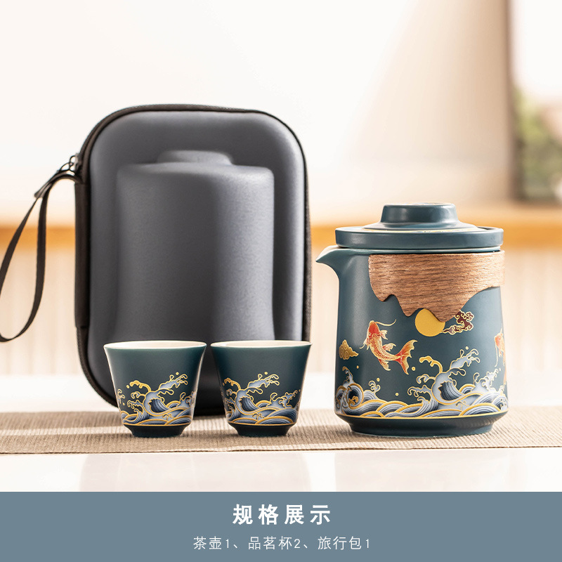 草木灰《锦鲤报福》一壶二杯旅行茶具