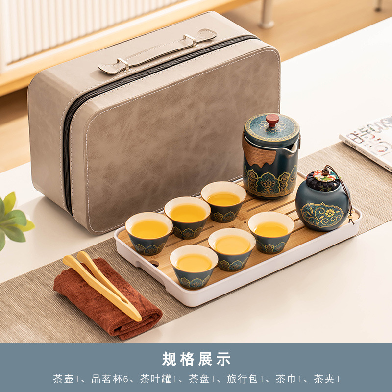 _霁蓝《古茗》一壶6杯+茶叶罐+茶盘+旅行包(送茶巾茶夹)