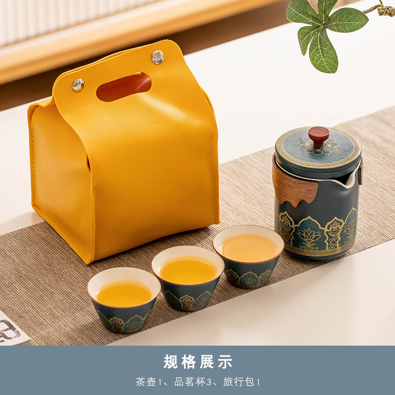 霁蓝《古茗》一壶三杯+黄皮包