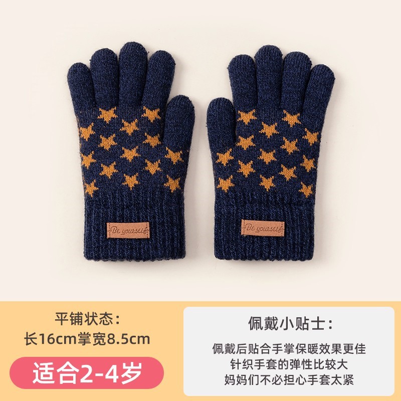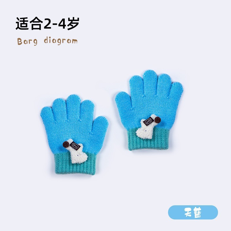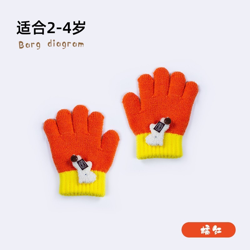 可爱卡通儿童手套女童毛线五指学生针织保暖男童防寒保暖写字批发