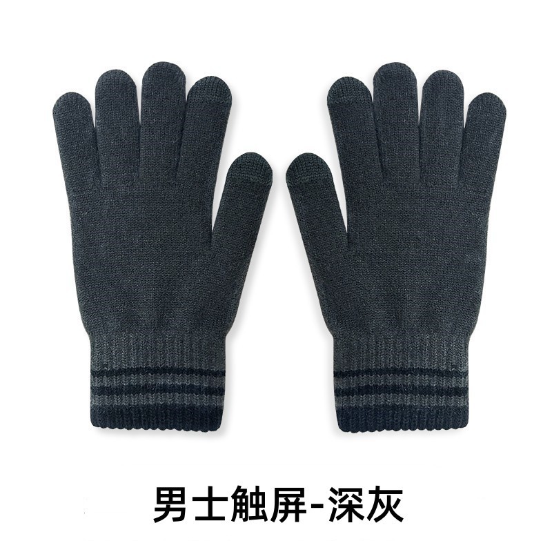 触屏男士加大防寒手套冬季针织加绒加厚保暖五指骑行骑车学生批发