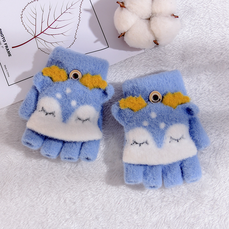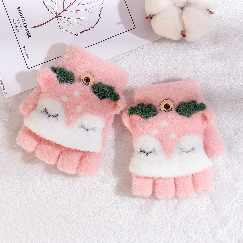 毛线儿童手套冬季女童可爱半指露指防寒保暖针织男童卡通批发写字