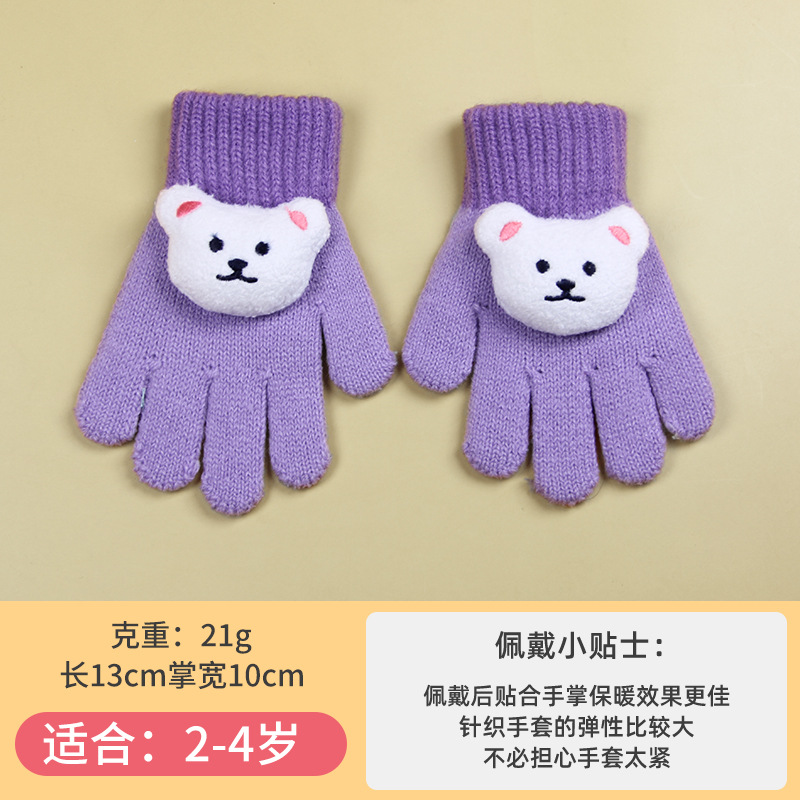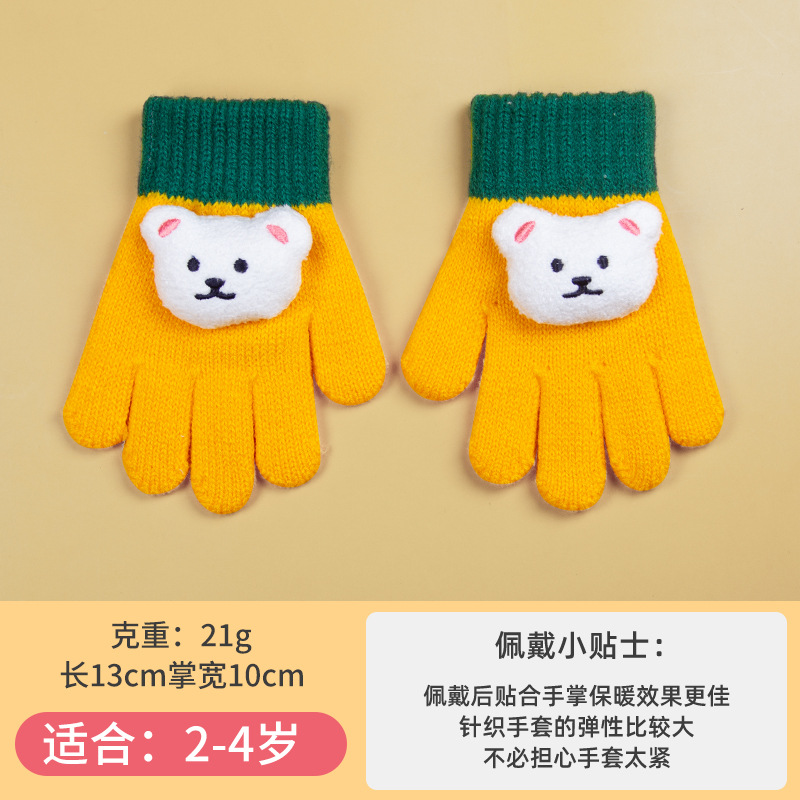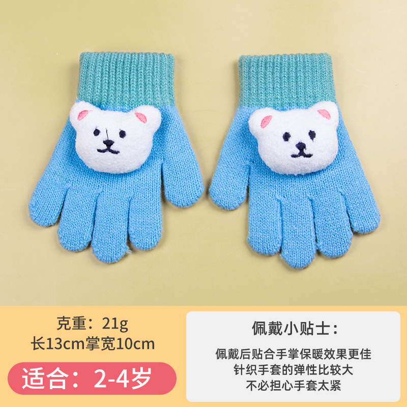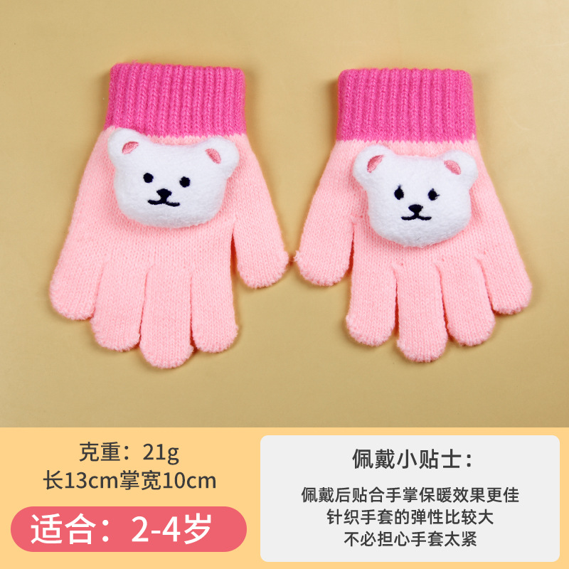 小童手套冬季针织防寒保暖分指糖果色幼儿男女小宝宝可爱卡通批发