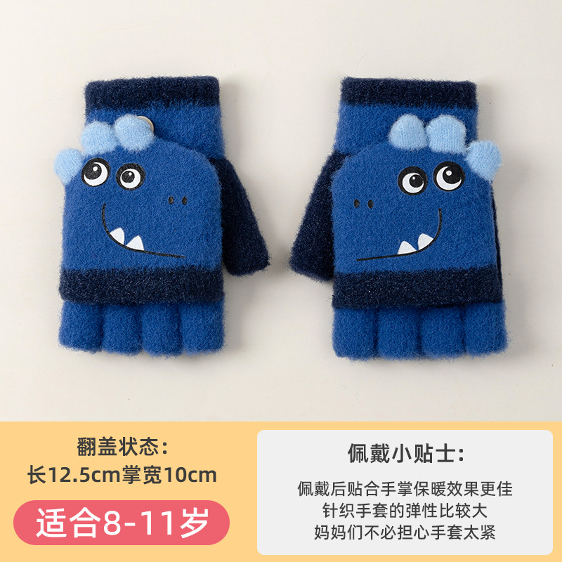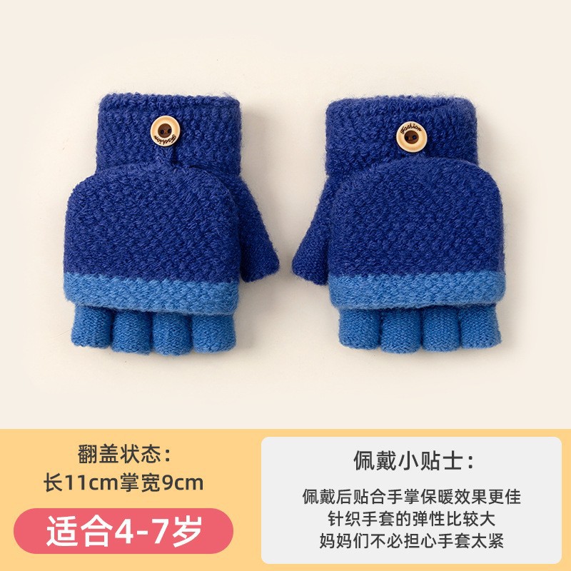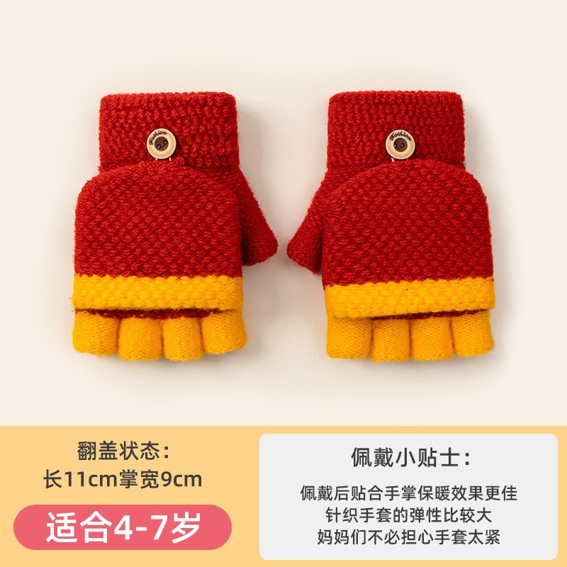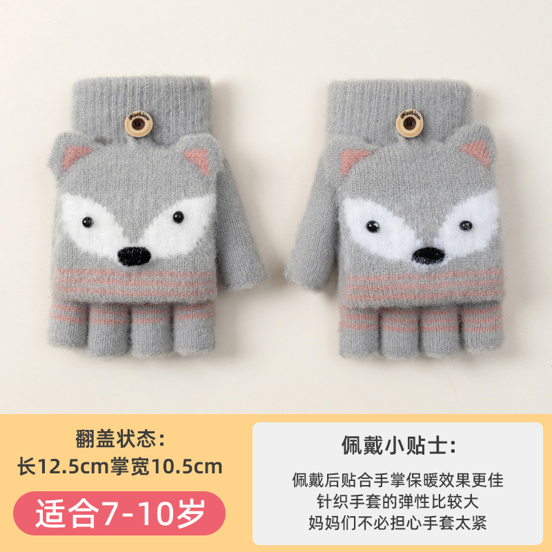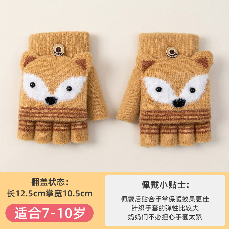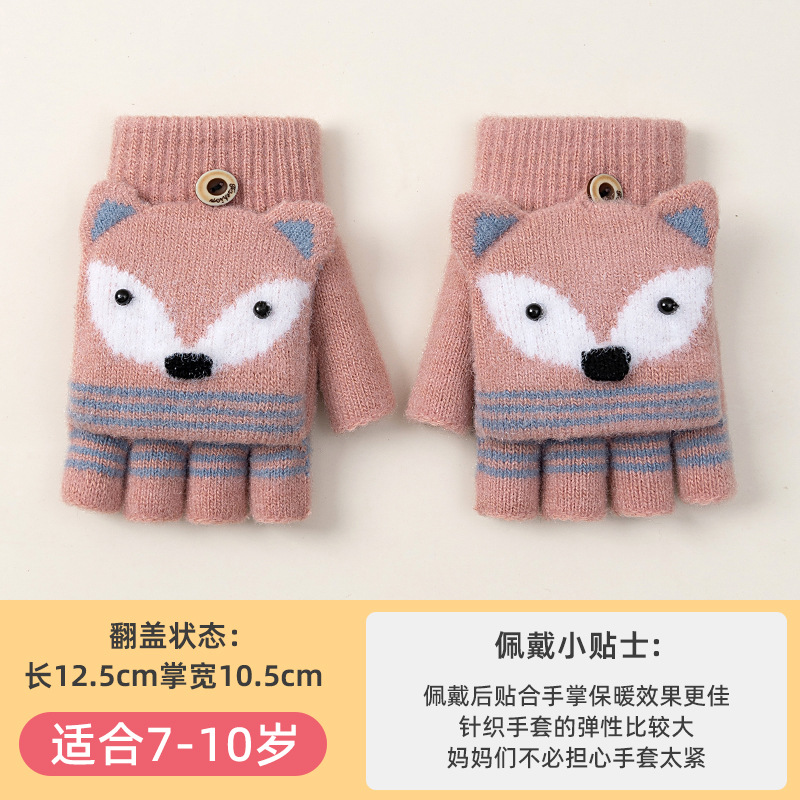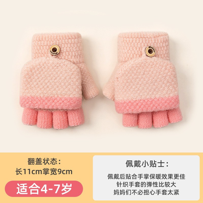 儿童手套冬季半指翻盖保暖针织露指女孩可爱手套批发男孩学生写字