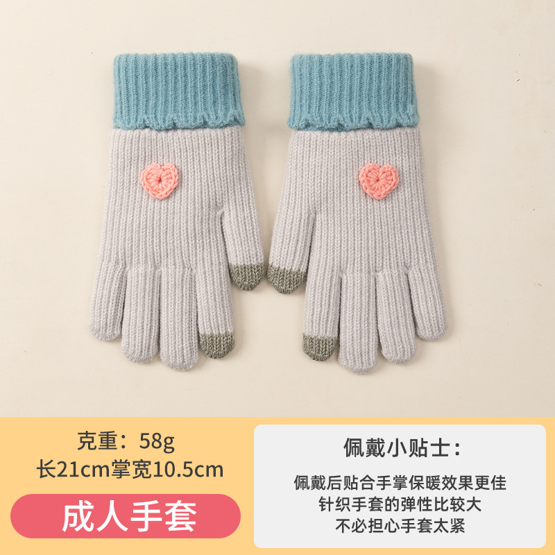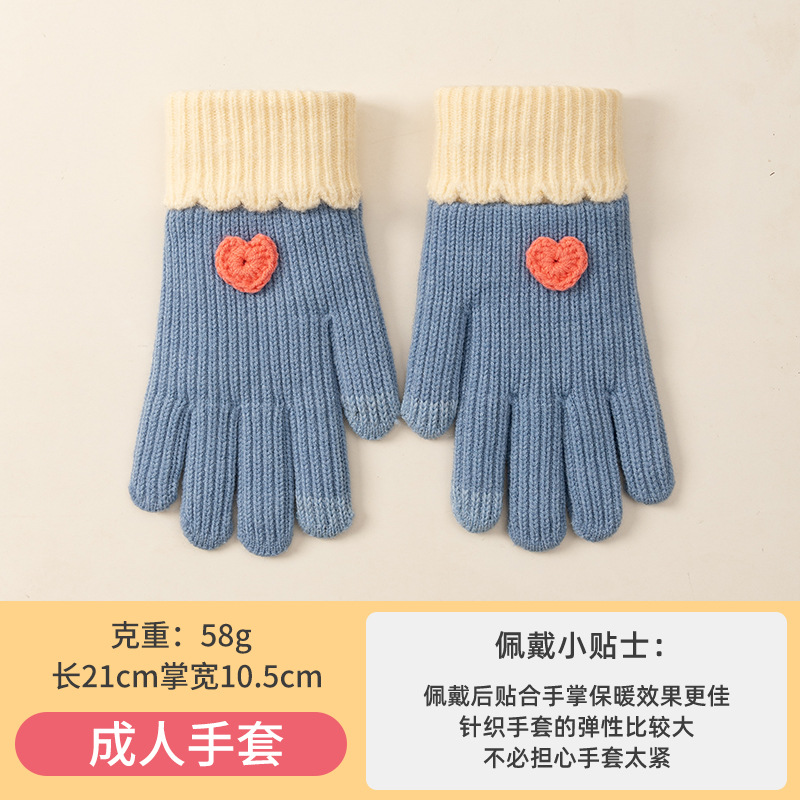 渐变毛线保暖手套女士秋冬季学生韩版骑行针织五指防寒可触屏批发