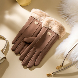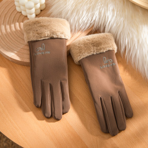 手套女秋冬季分指可爱触屏防寒保暖针织加绒骑车骑行手套批发五指