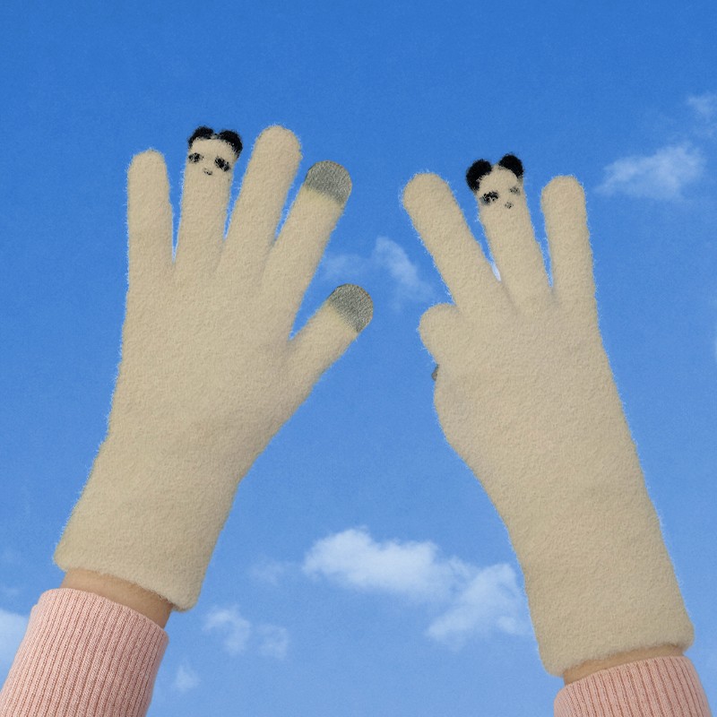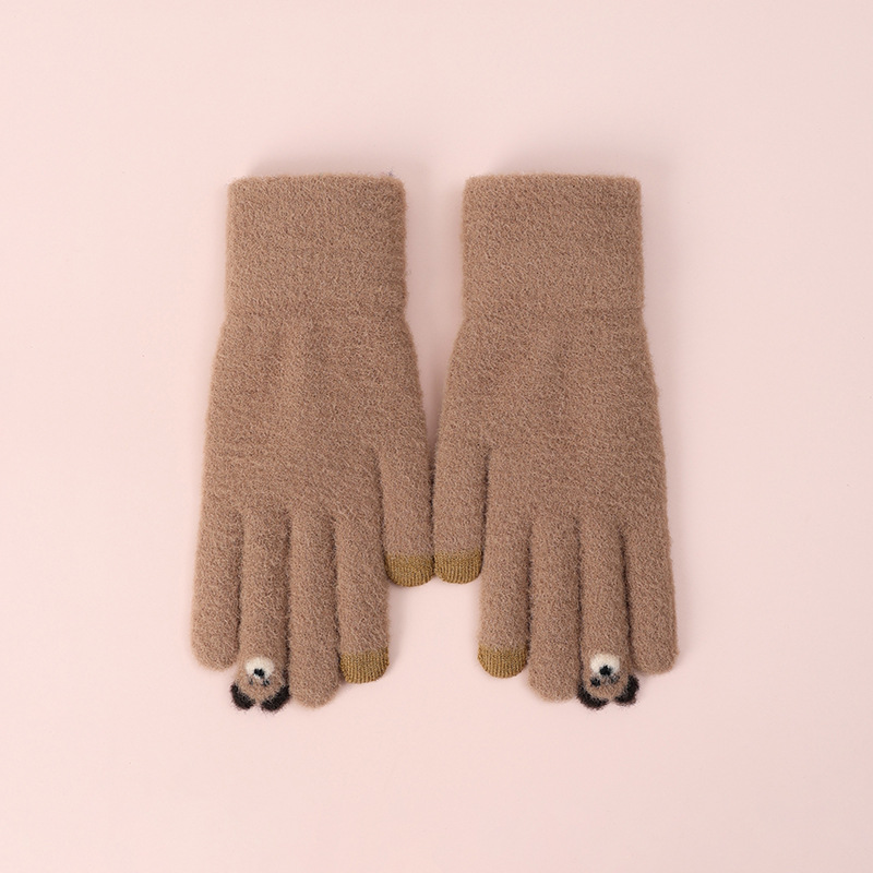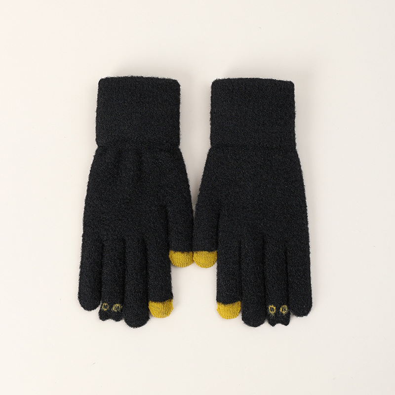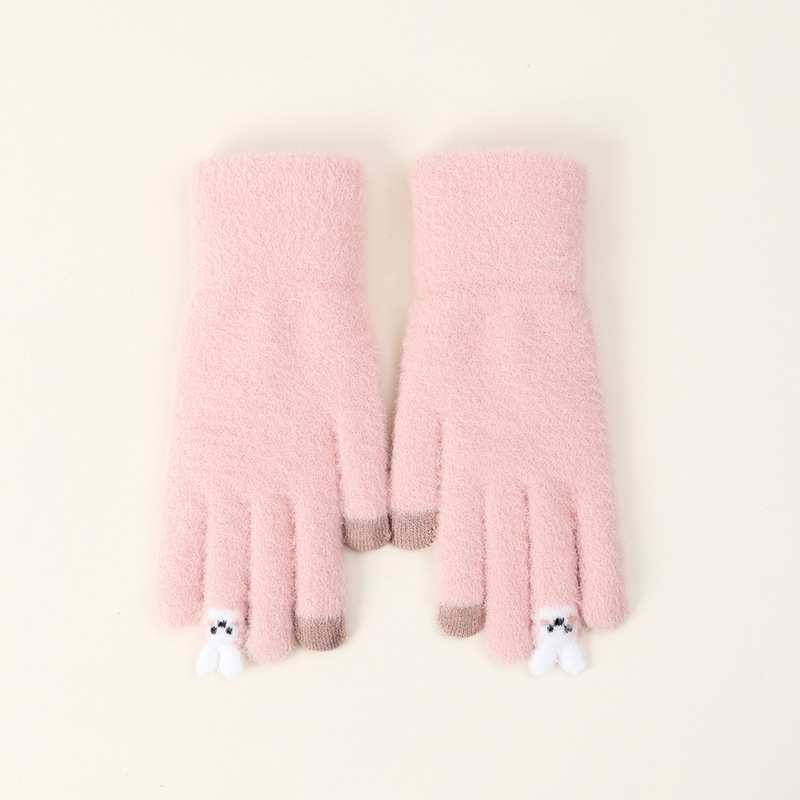 触屏手套女士可爱秋冬季毛线针织防寒保暖加绒五指骑行车学生批发