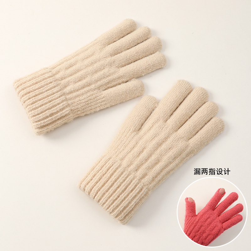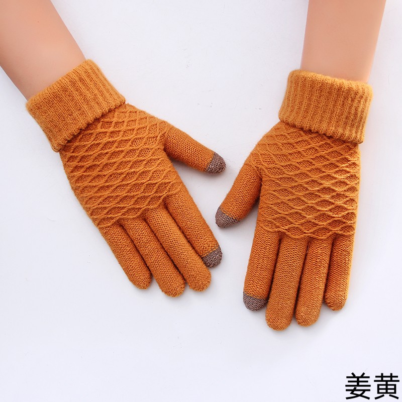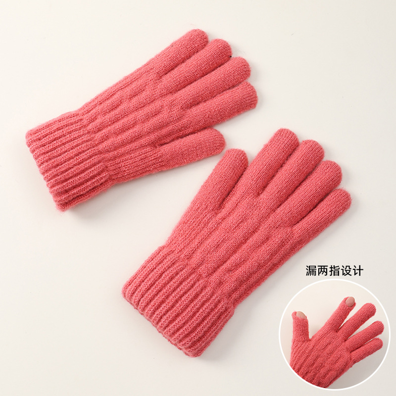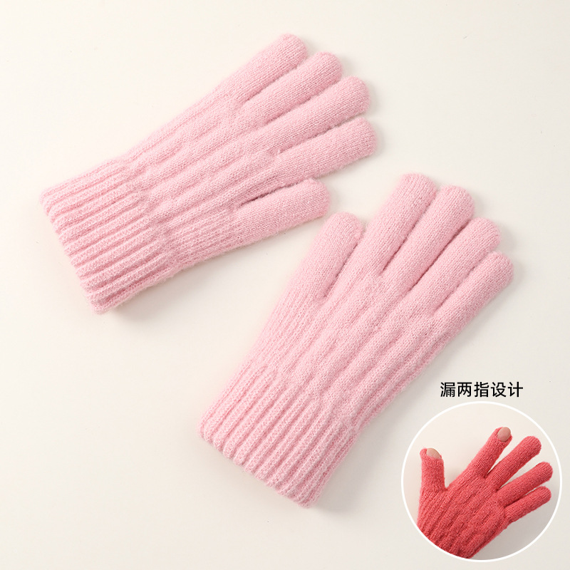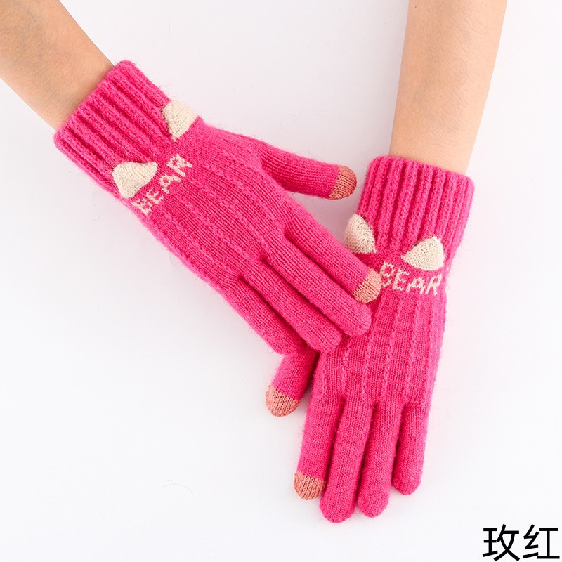 女学生手套秋冬季毛线针织五指加厚防寒保暖骑行骑车触屏可爱批发