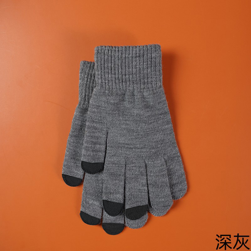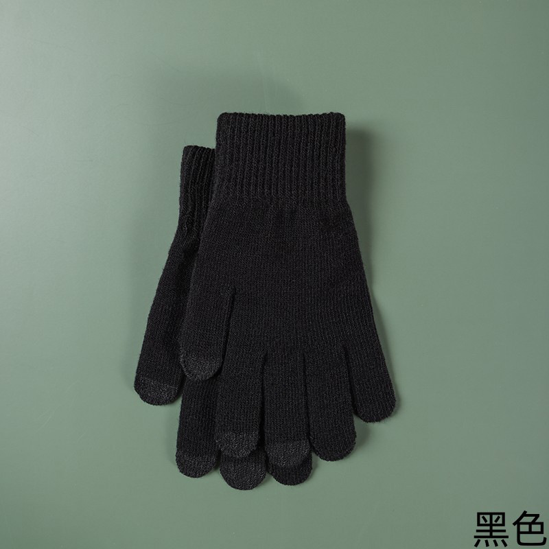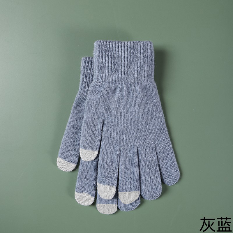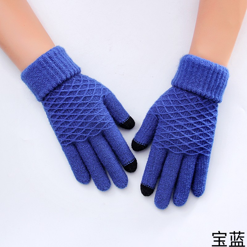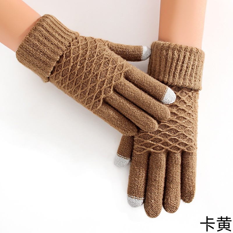 女学生手套秋冬季毛线针织五指加厚防寒保暖骑行骑车触屏可爱批发