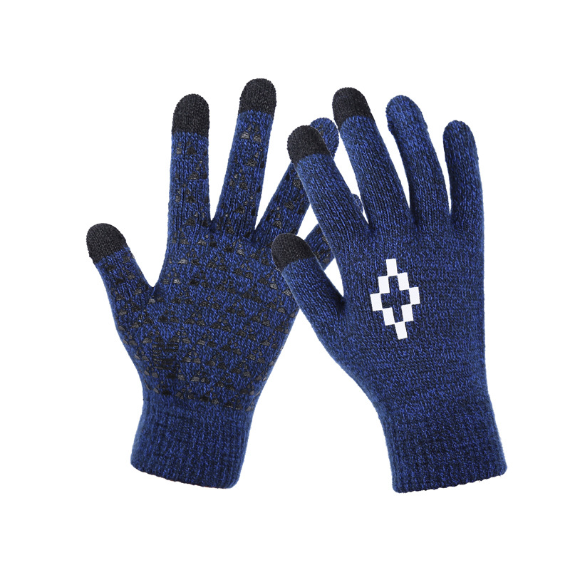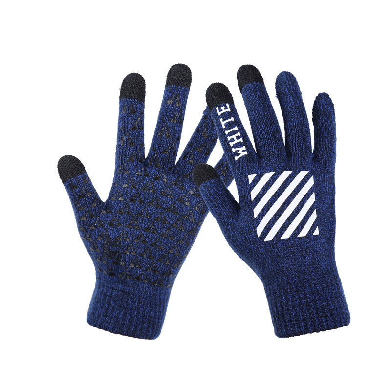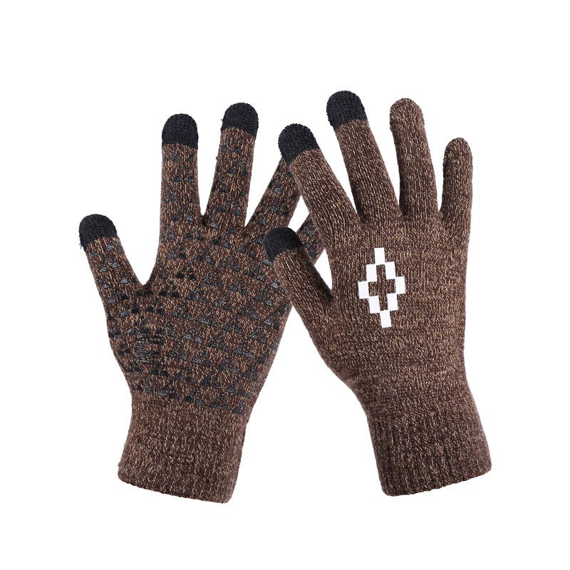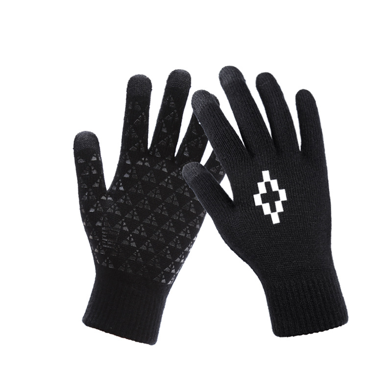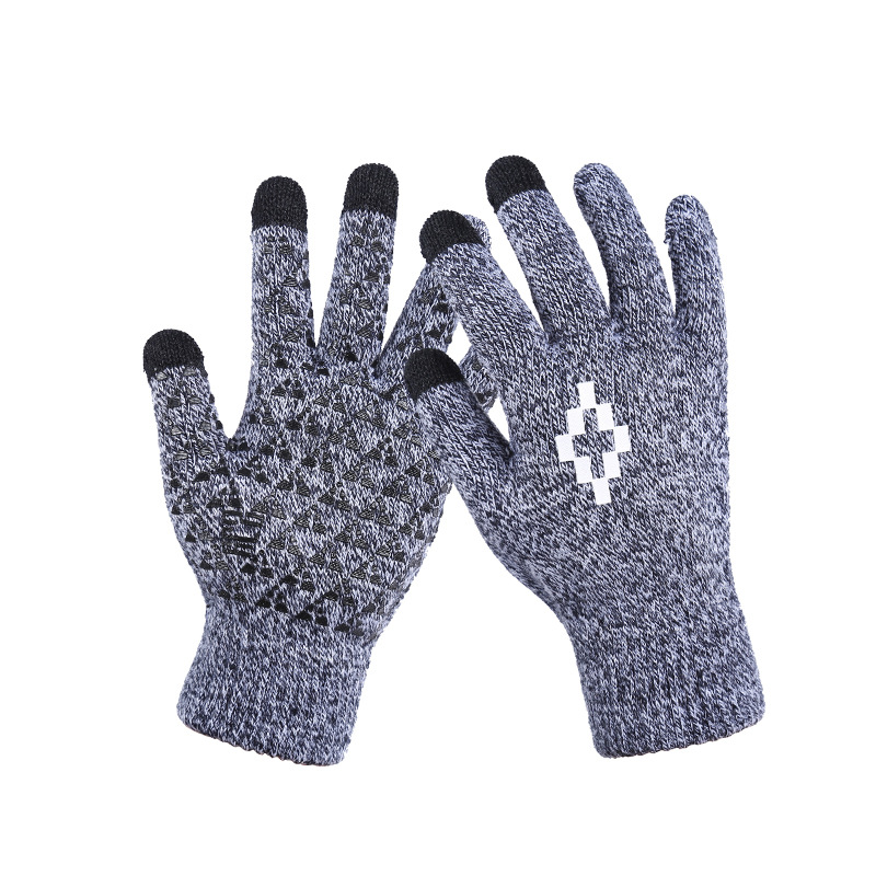 男士手套冬季触屏五指毛线针织成人骑行胶印防滑加厚游戏手套批发