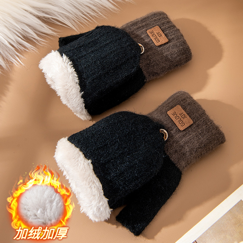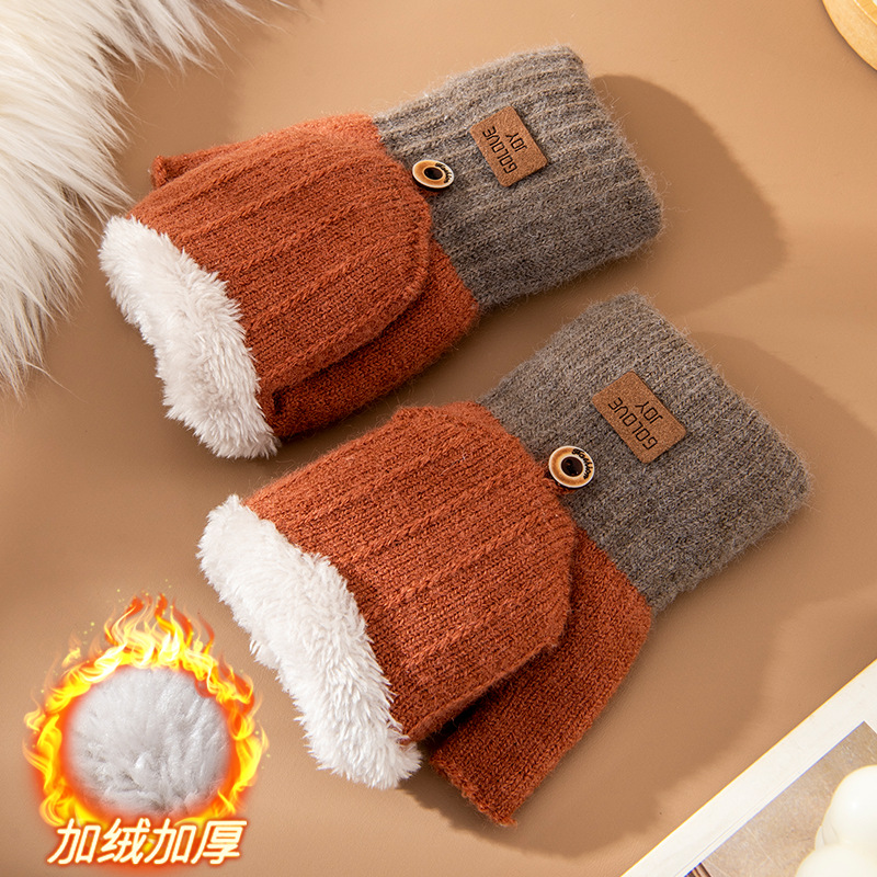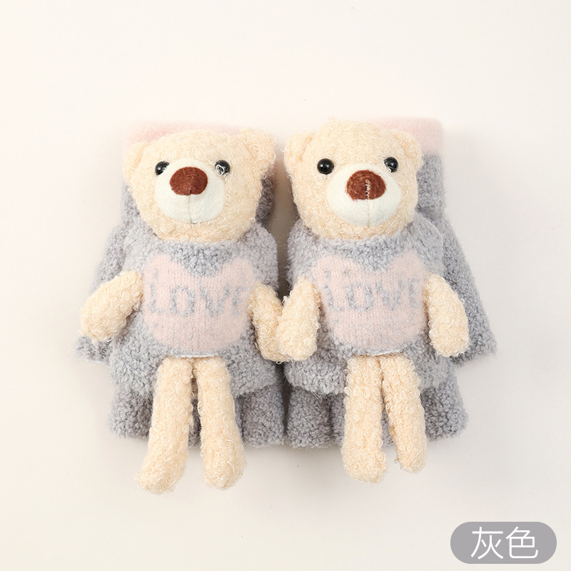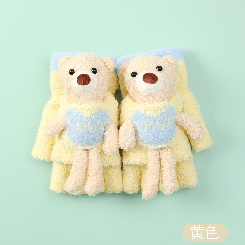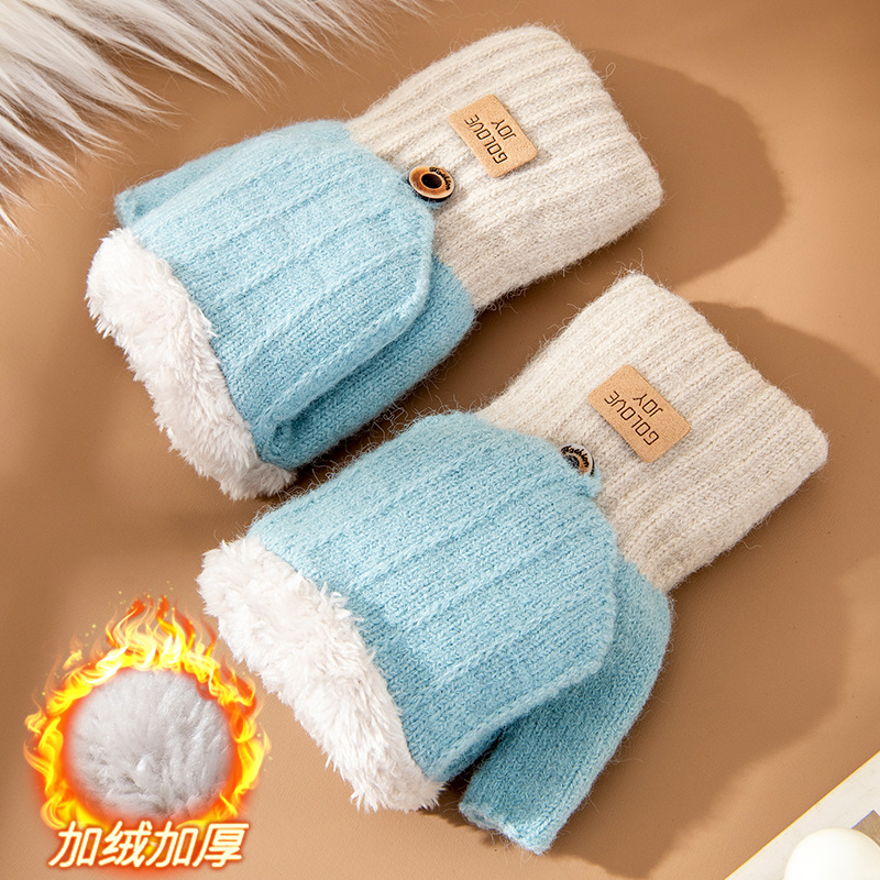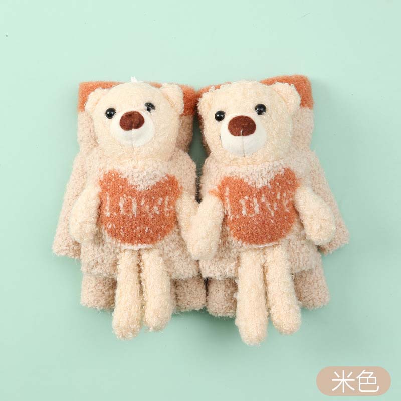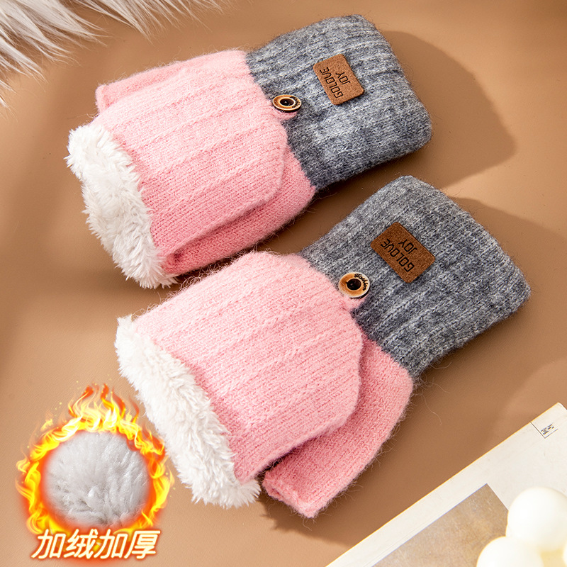 儿童手套秋冬季女孩防寒保暖针织毛线五指可爱卡通中学生写字批发