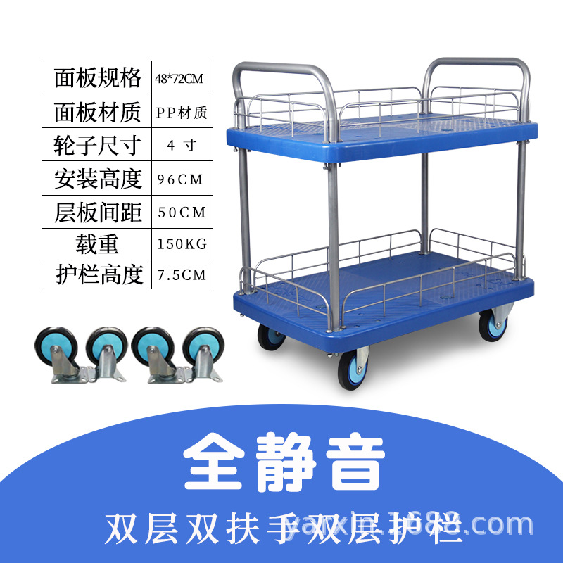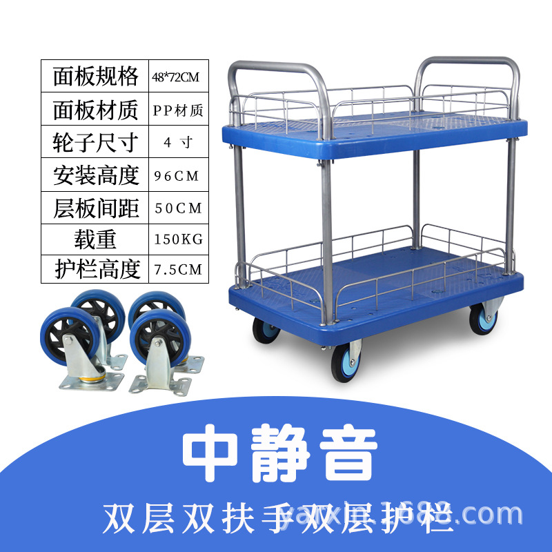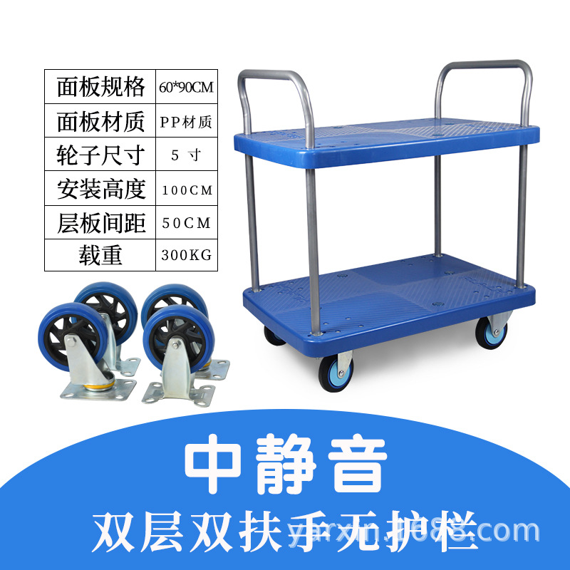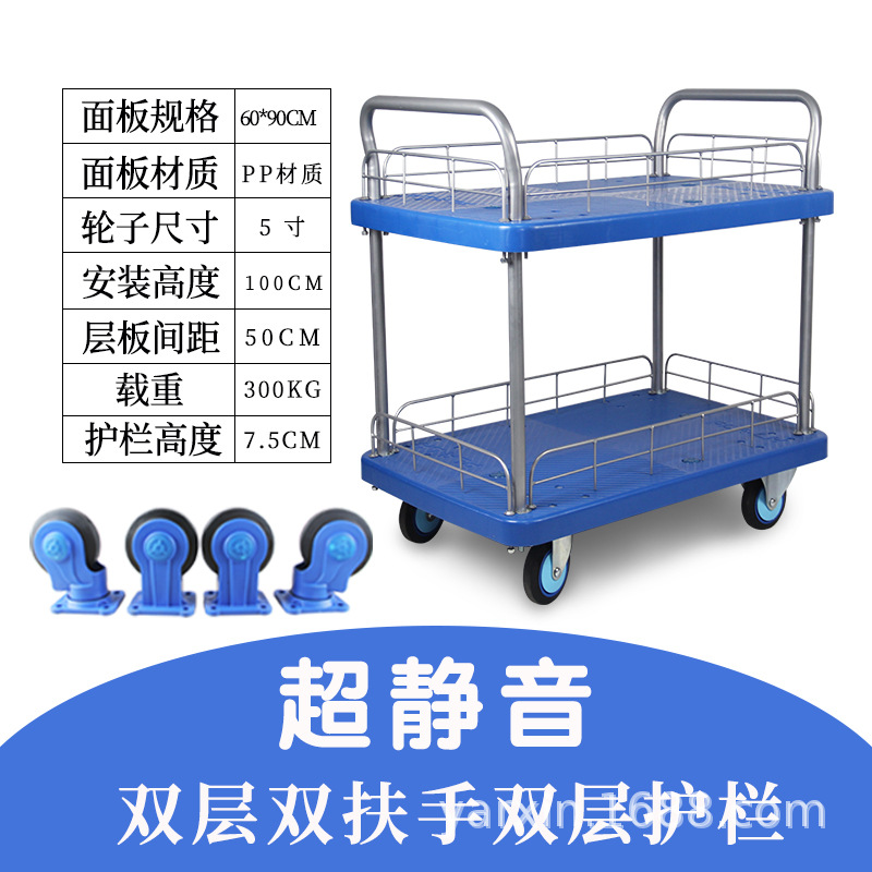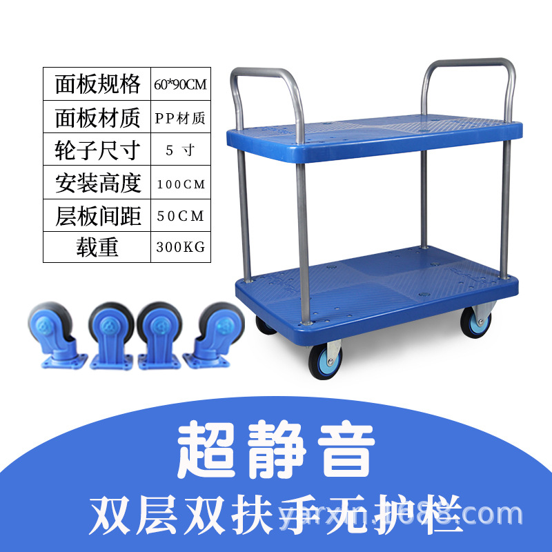 双层塑料手推车静音拖车仓库拣货车搬运车家用小推车工具车平板车
