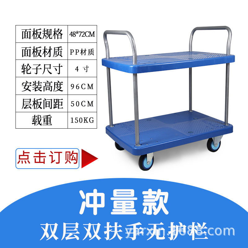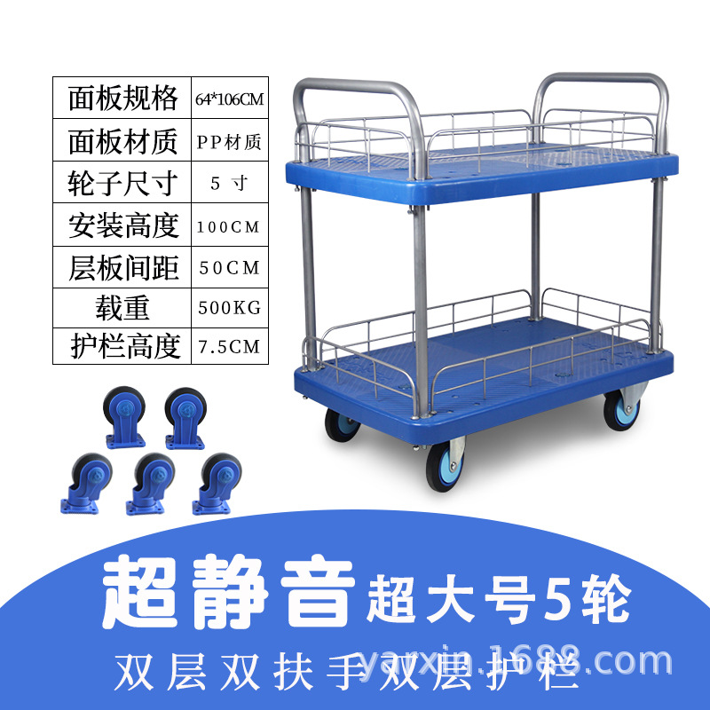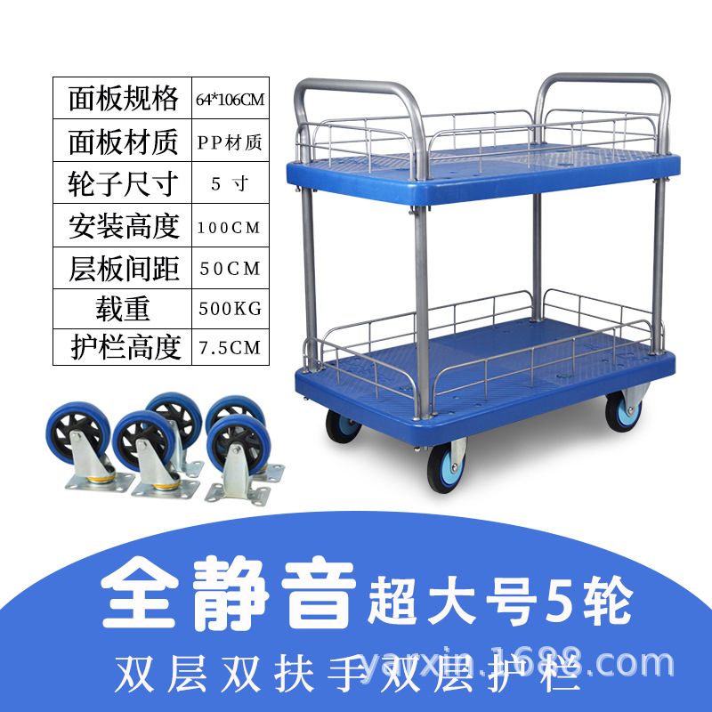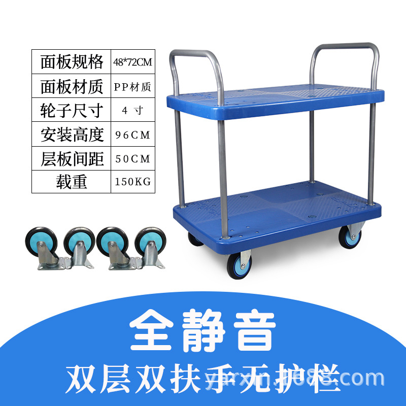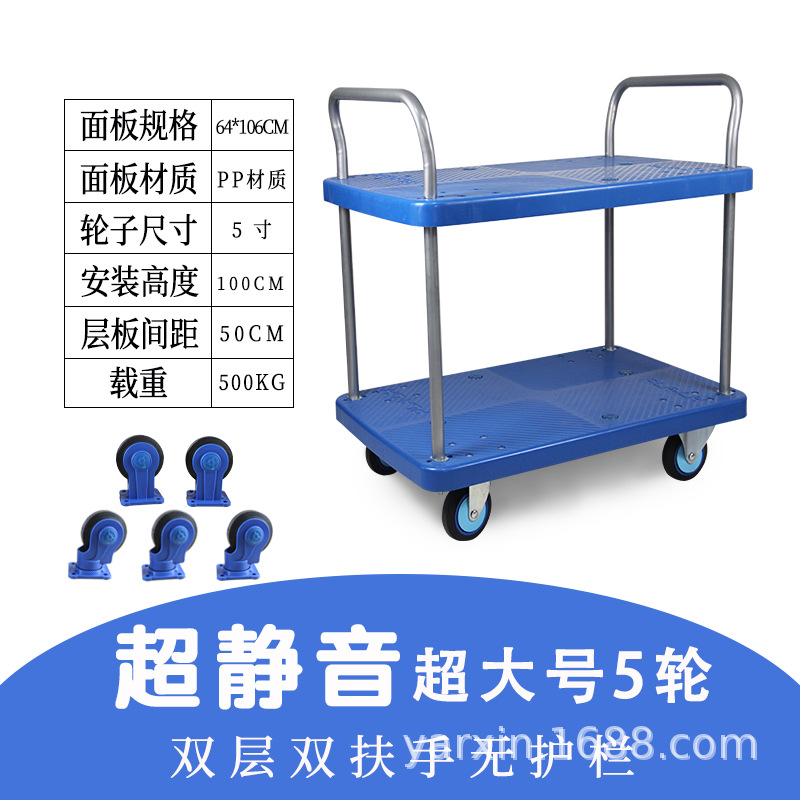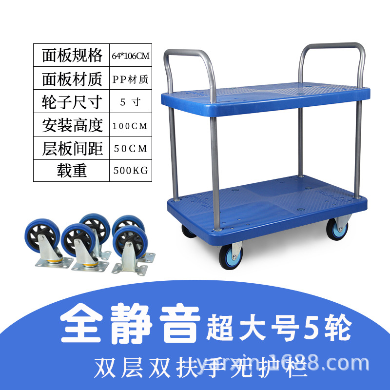 双层塑料手推车静音拖车仓库拣货车搬运车家用小推车工具车平板车
