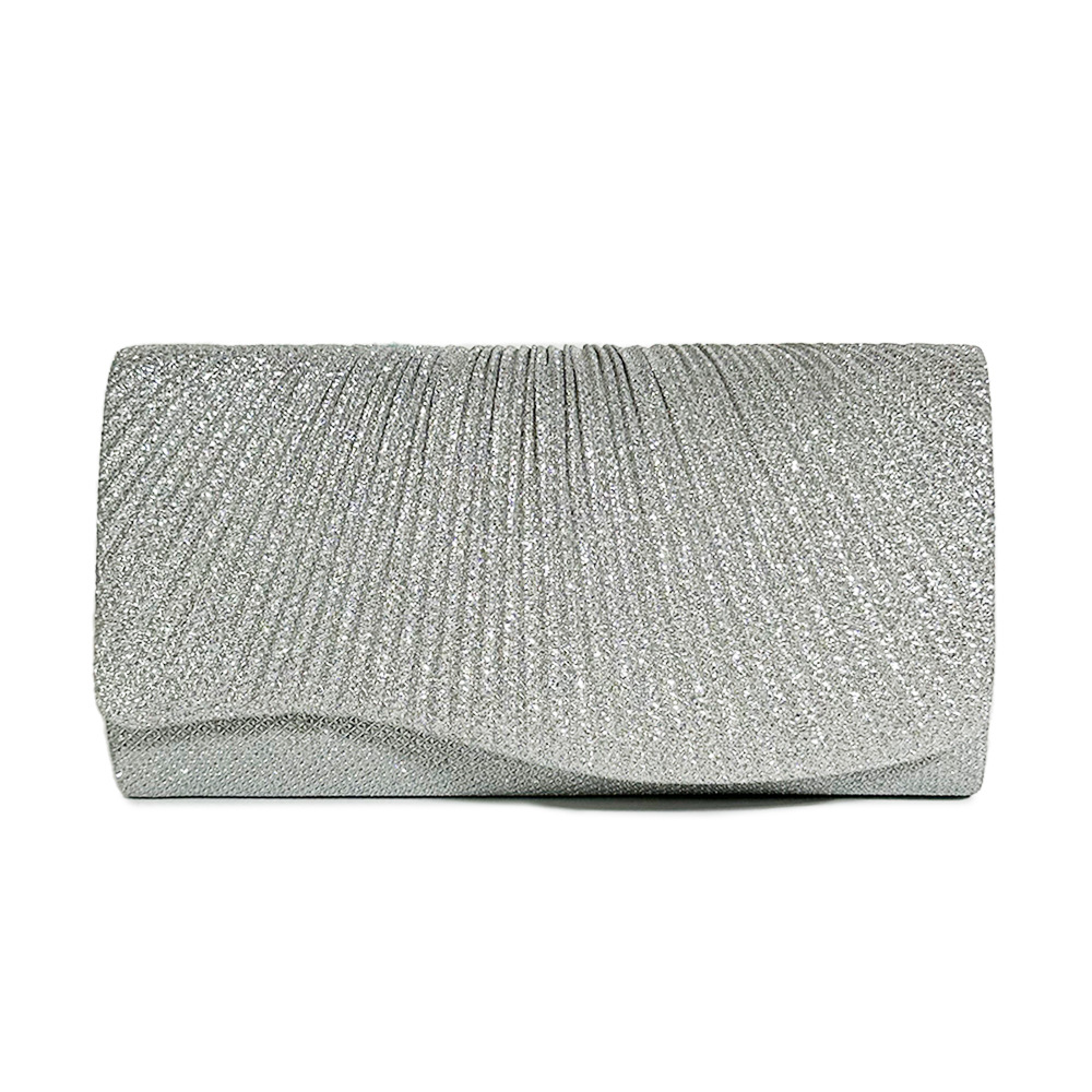 新款褶皱迷你手拿包闪亮幻彩晚宴包链条斜跨包