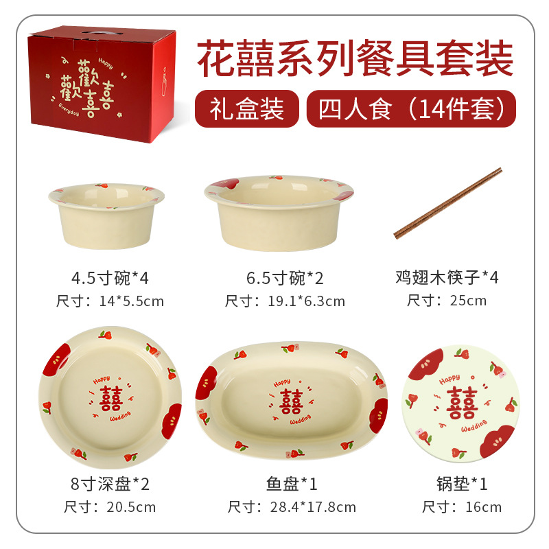 双喜字订婚礼物囍餐具套装送新人陶瓷闺蜜陪嫁送新娘饭碗筷组合