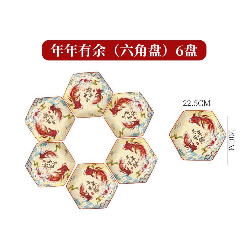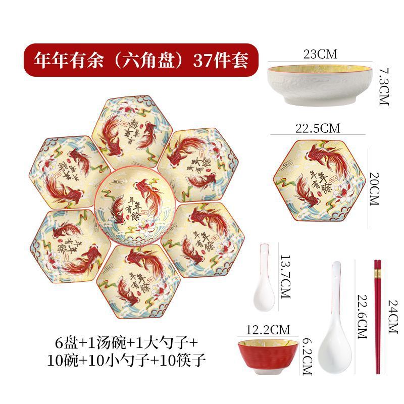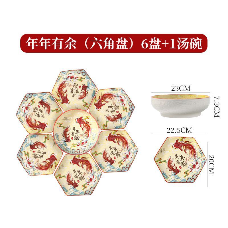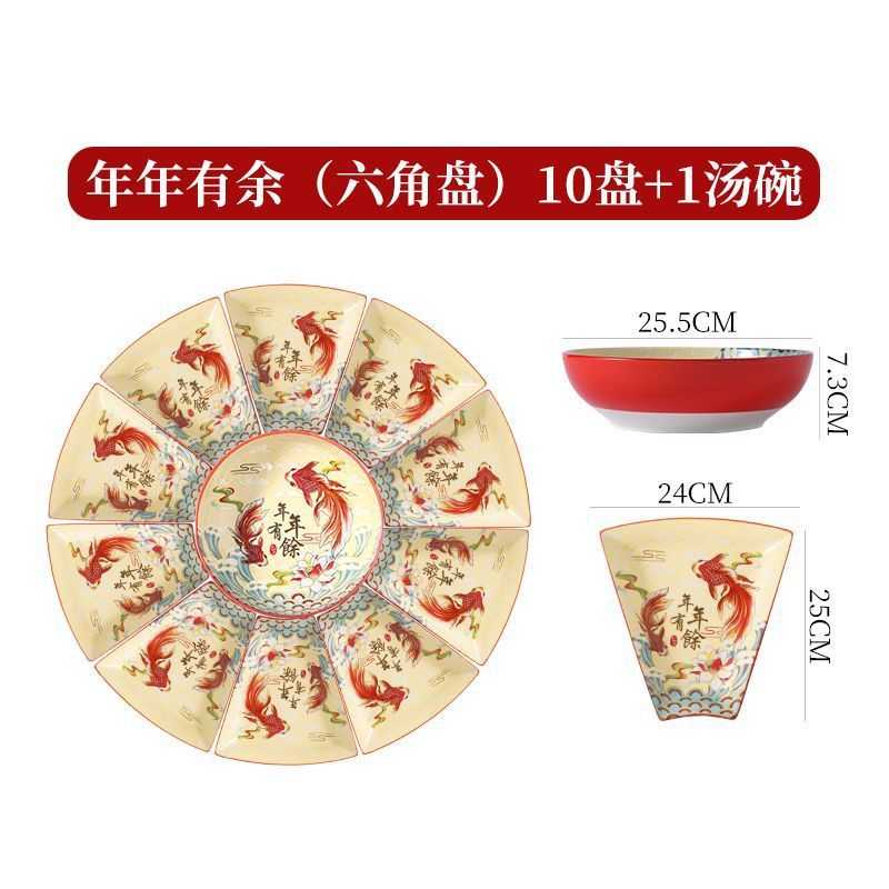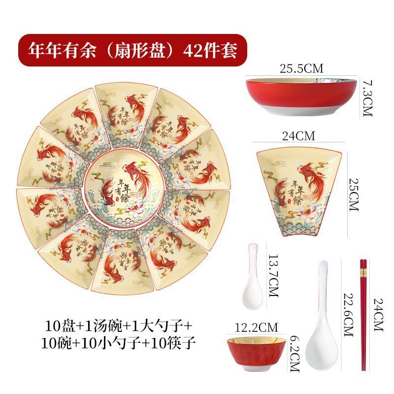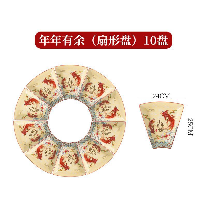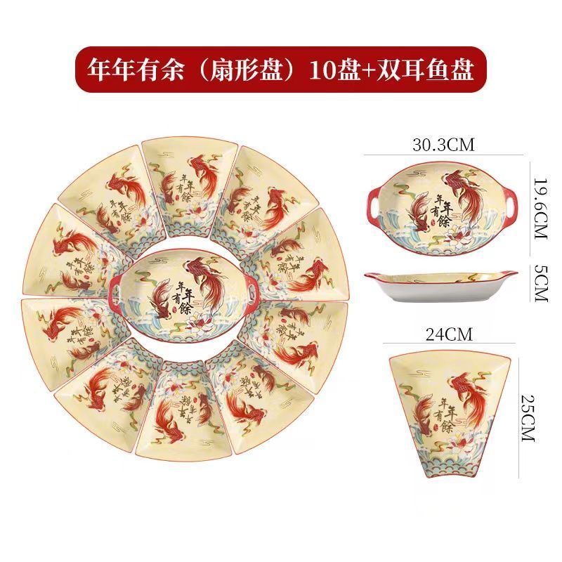 网红陶瓷拼盘餐具组合过年团圆年夜饭中式扇形盘创意碗碟套装家用