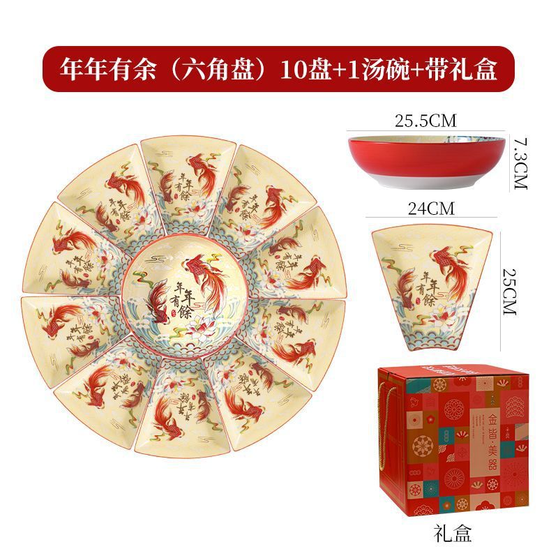 扇形盘-10盘+汤碗(礼盒装)