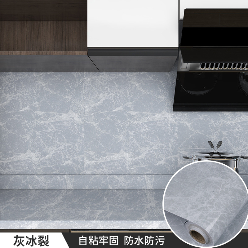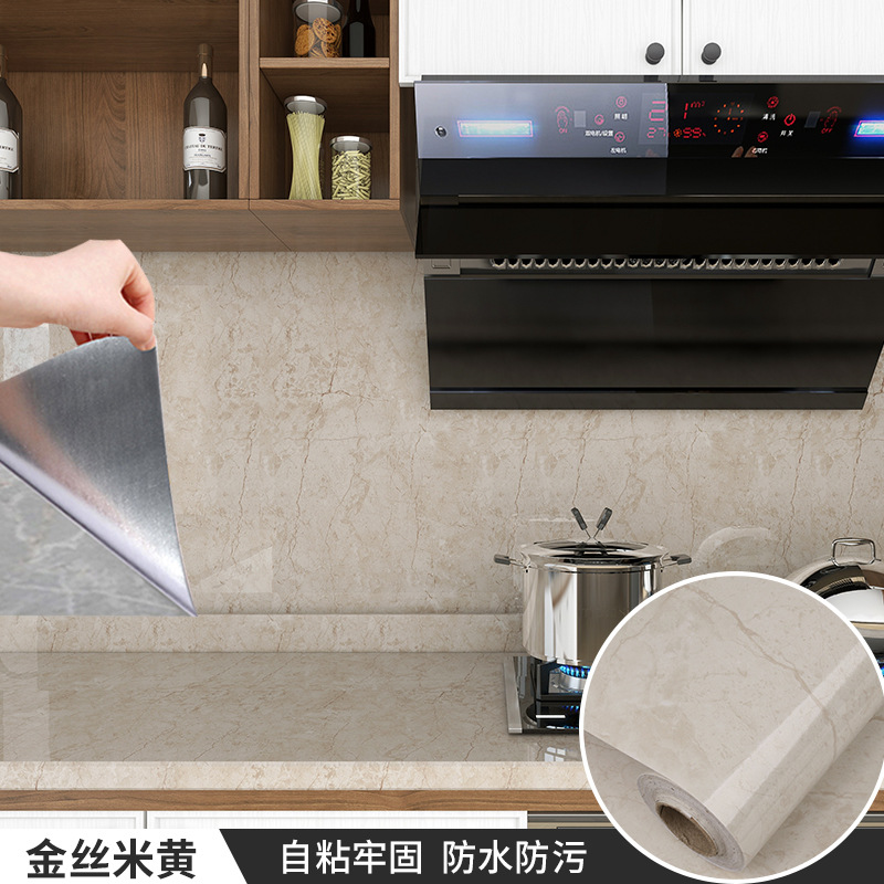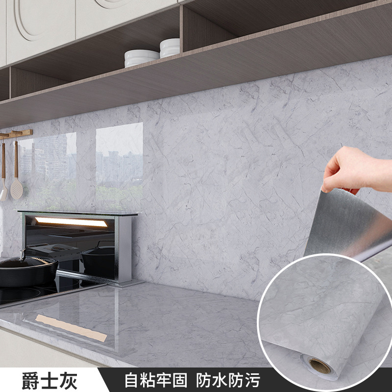 厨房防油贴纸耐高温铝箔底大理石纹墙纸灶台面防水自粘壁纸工厂