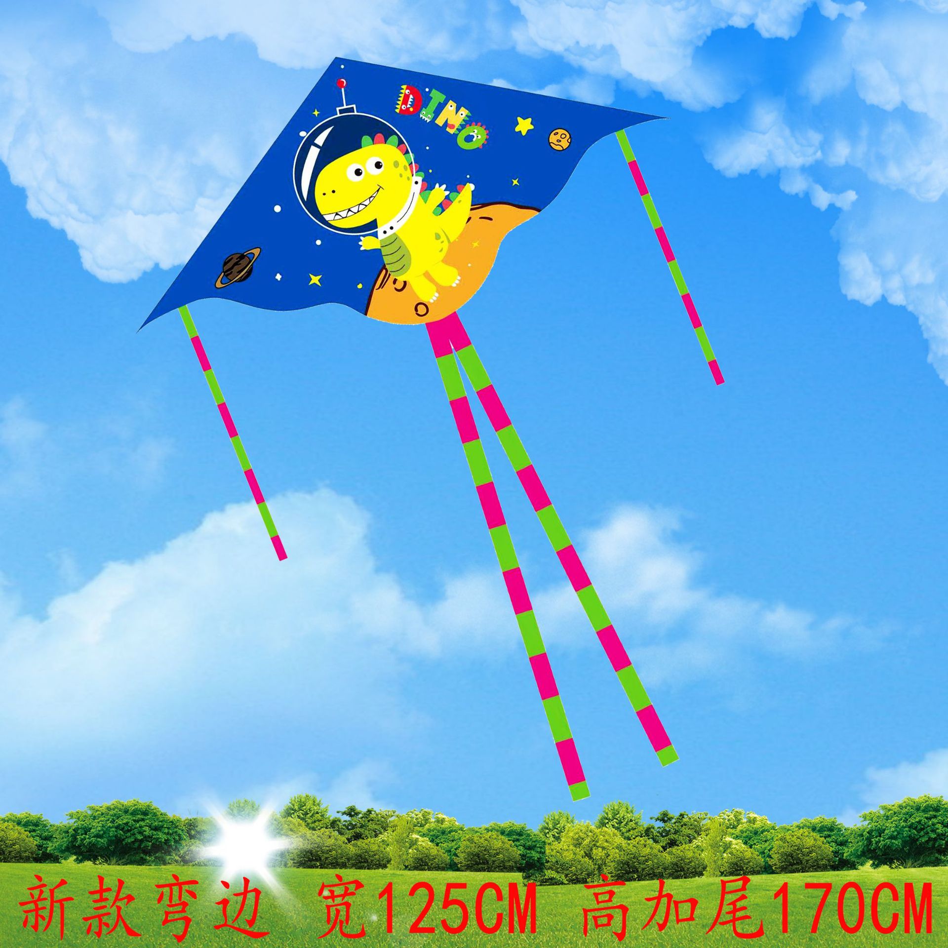新款1.25米弯边双尾风筝 多款可选好飞热印格子布加固处理亲子玩