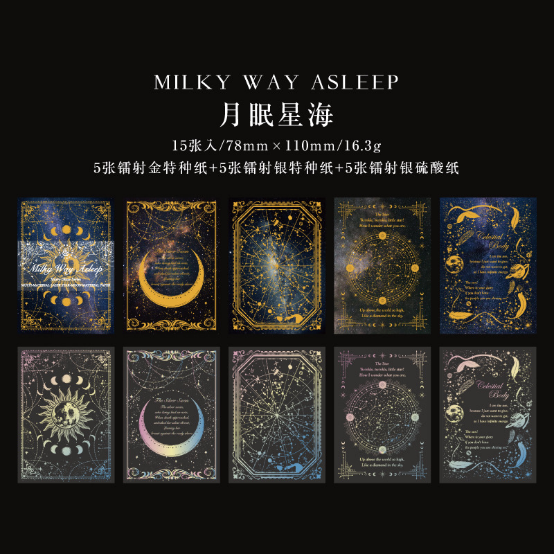 琉璃星月系列素材纸梦幻烫金镭射羽毛蝴蝶星球手帐DIY打底纸
