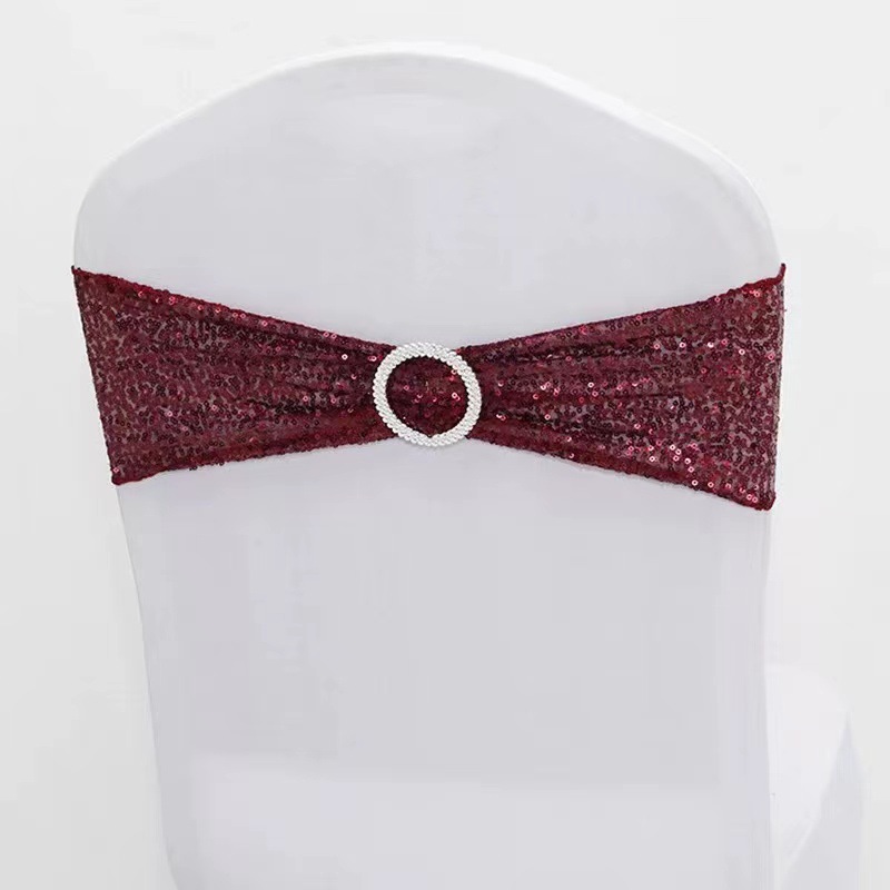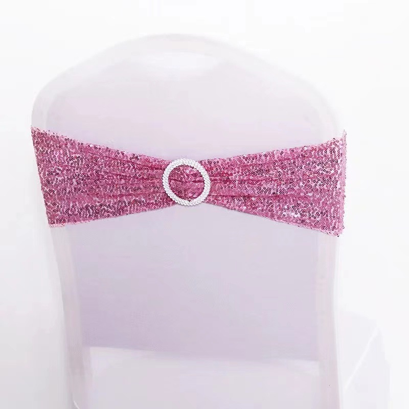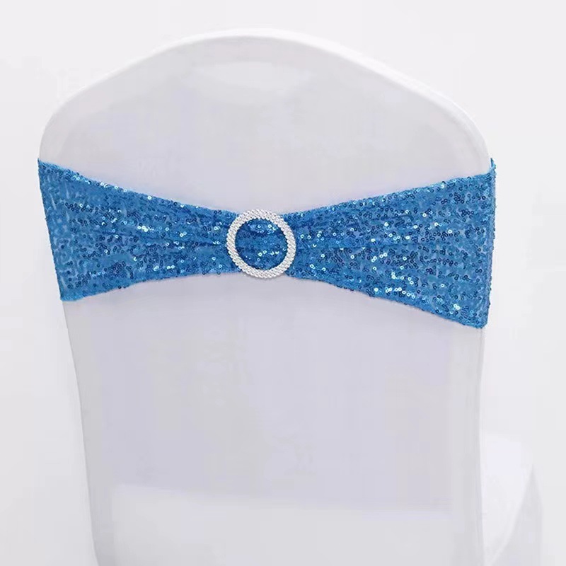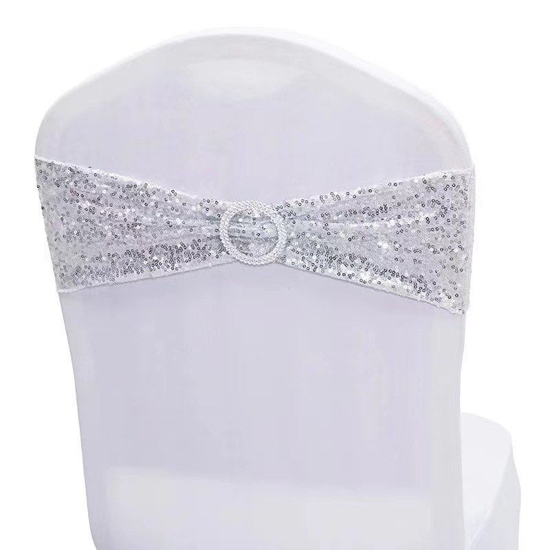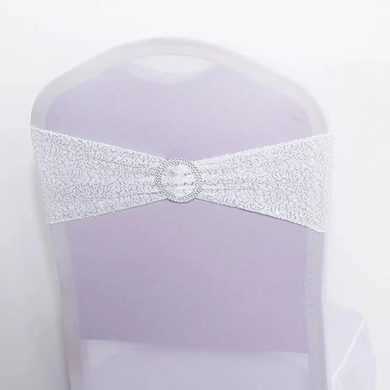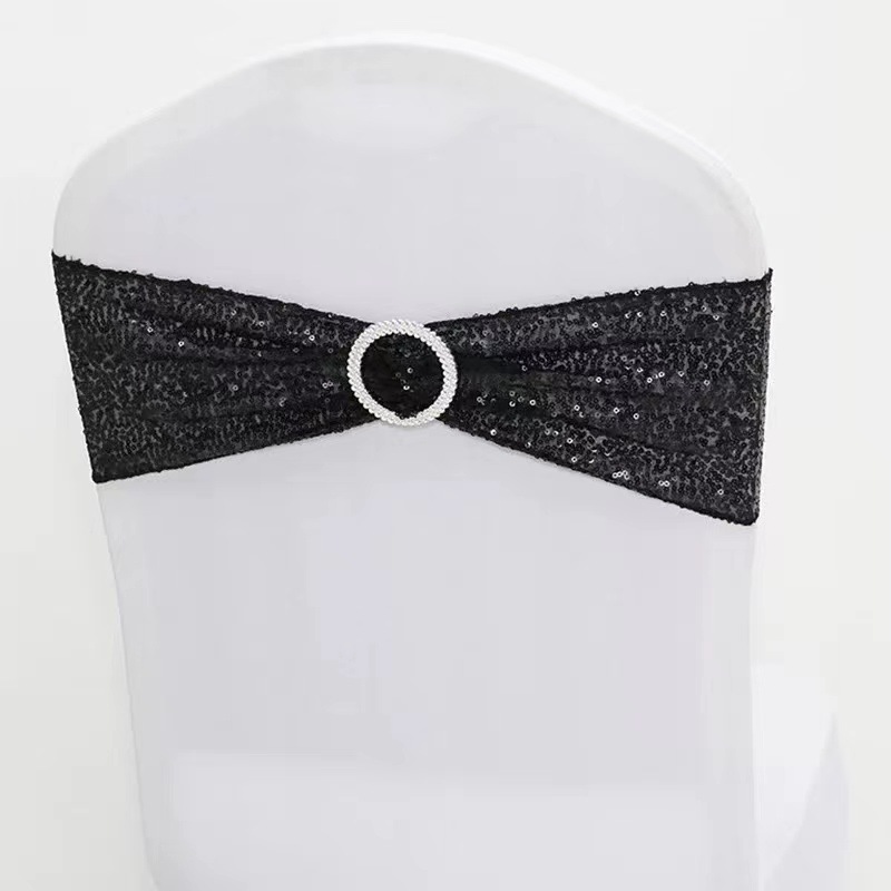 厂家 直供ins酒店婚庆装饰批发氨纶椅套蝴蝶结椅背花亮片绑带