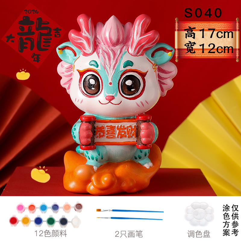 搪胶娃娃S024捧心龙宝宝白胚不含颜料画笔