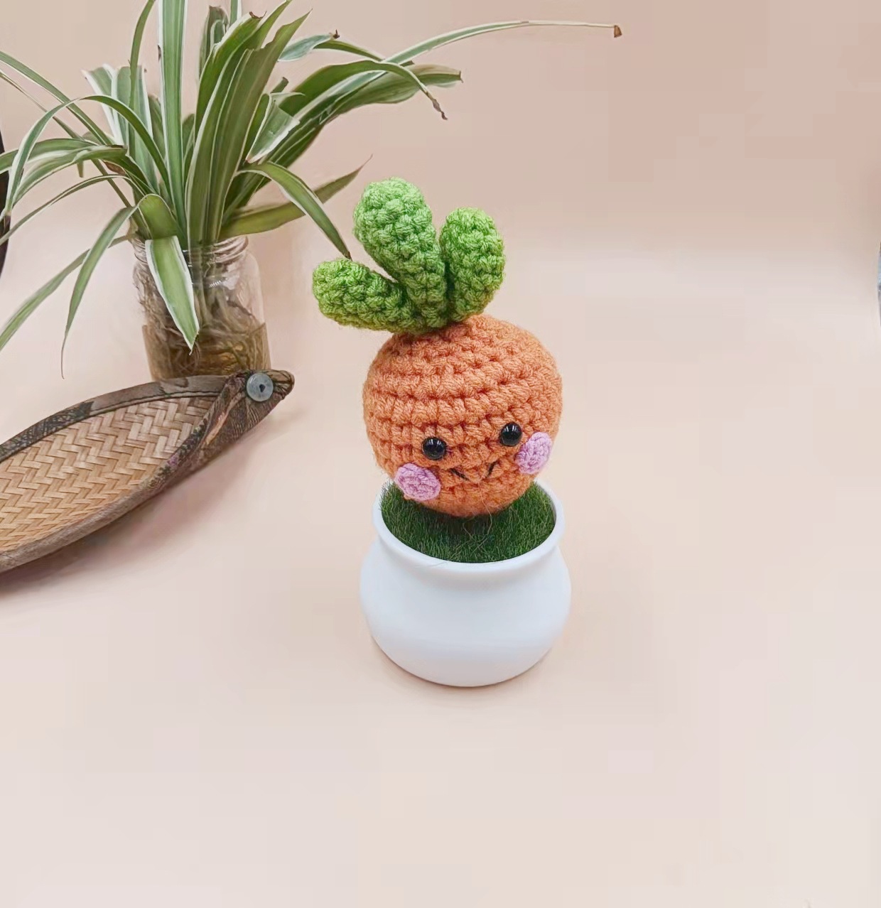 成品跨境毛线钩针植物大战僵尸系列盆栽桌面装饰车载摆件礼物批发