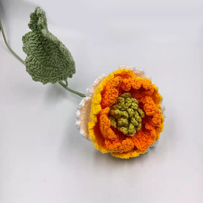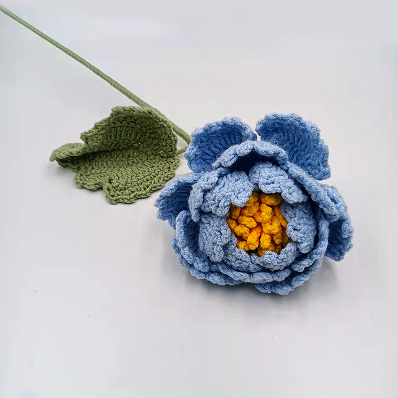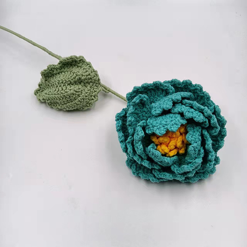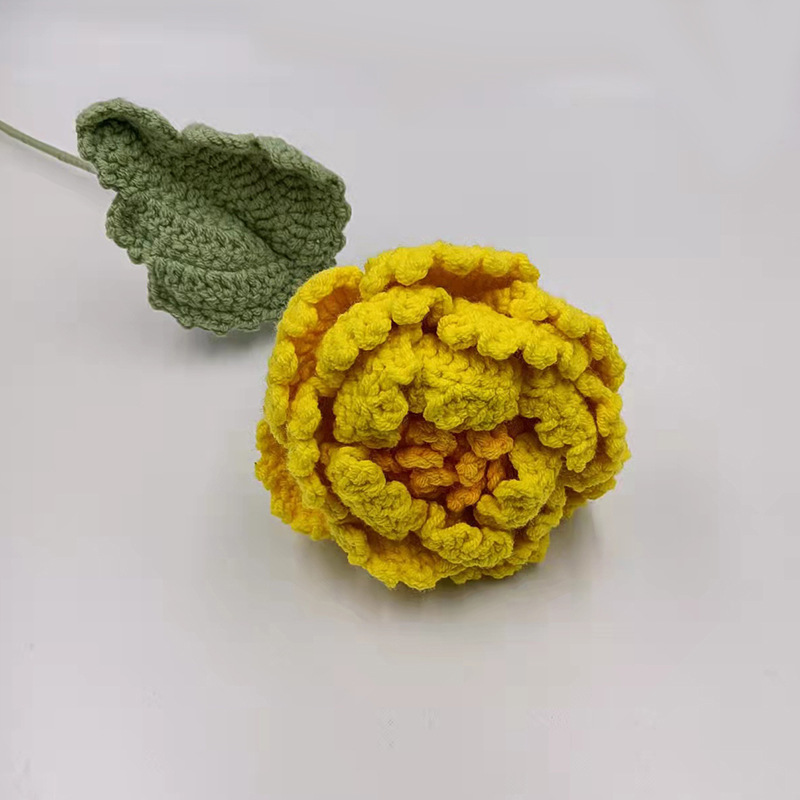 批发新款仿真花束成品手工编织荷花荷叶牡丹毛线针织花朵假花代发