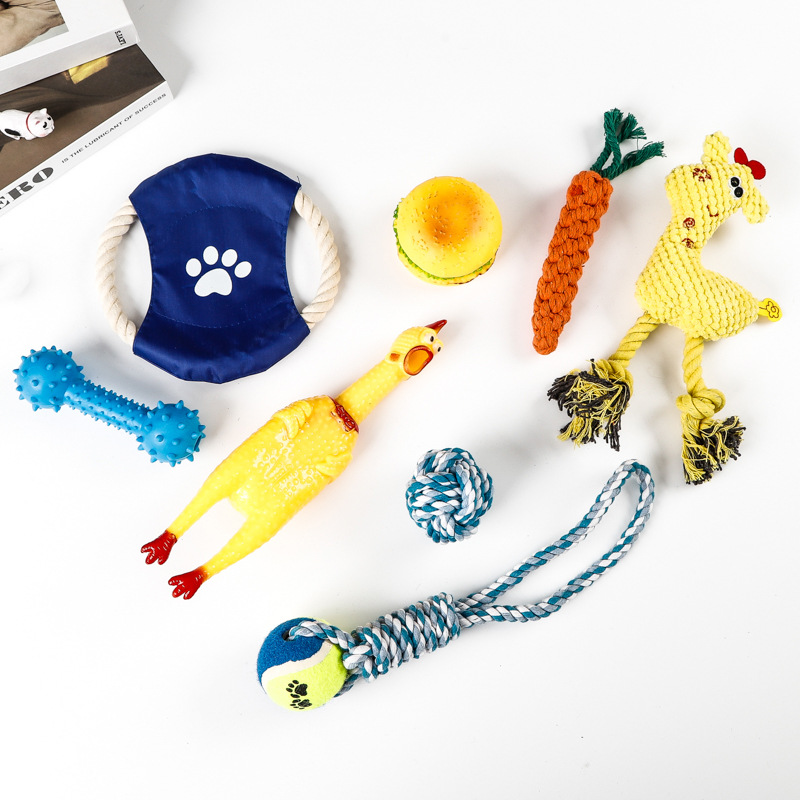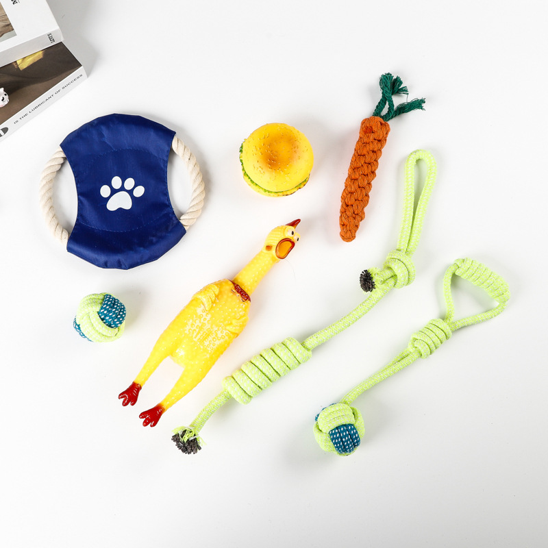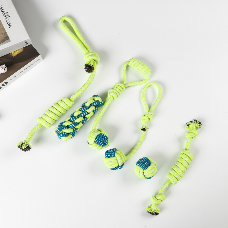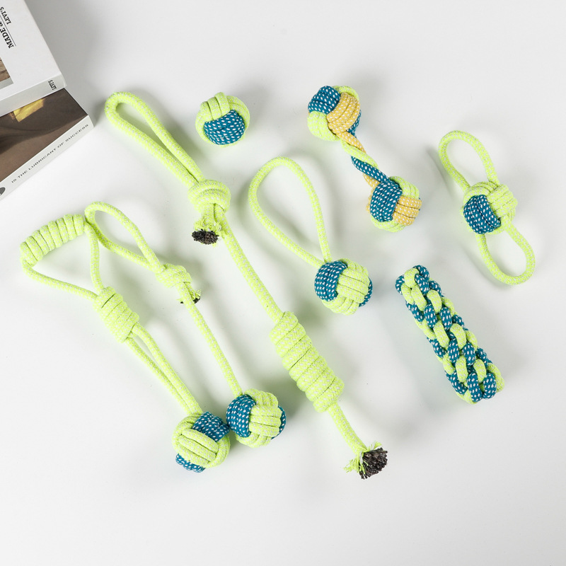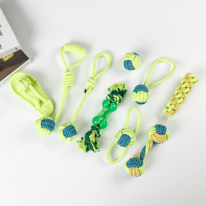 亚马逊爆款棉绳宠物玩具套装洁牙耐咬狗狗玩具绳结球磨牙厂家批发