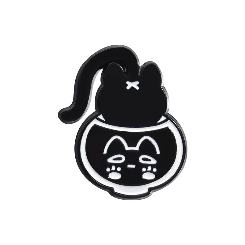 跨境电商热销新款动物合金胸针卡通可爱酒杯黑猫造型烤漆徽章批发