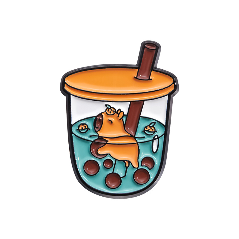 韩版ins卡通可爱动物狐狸珍珠奶茶饮料杯合金胸针衣服包包配饰扣