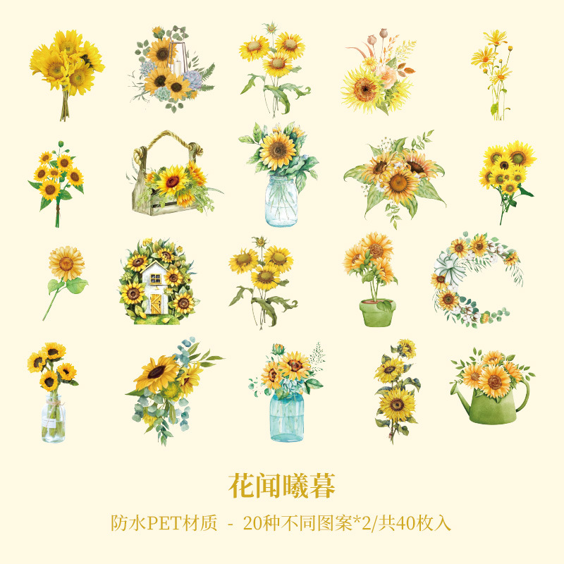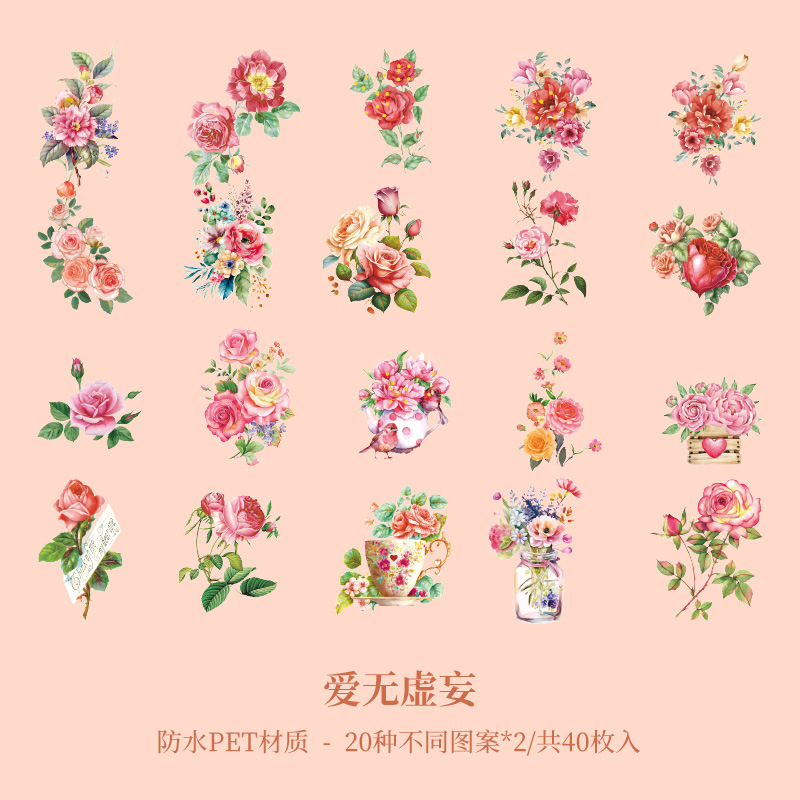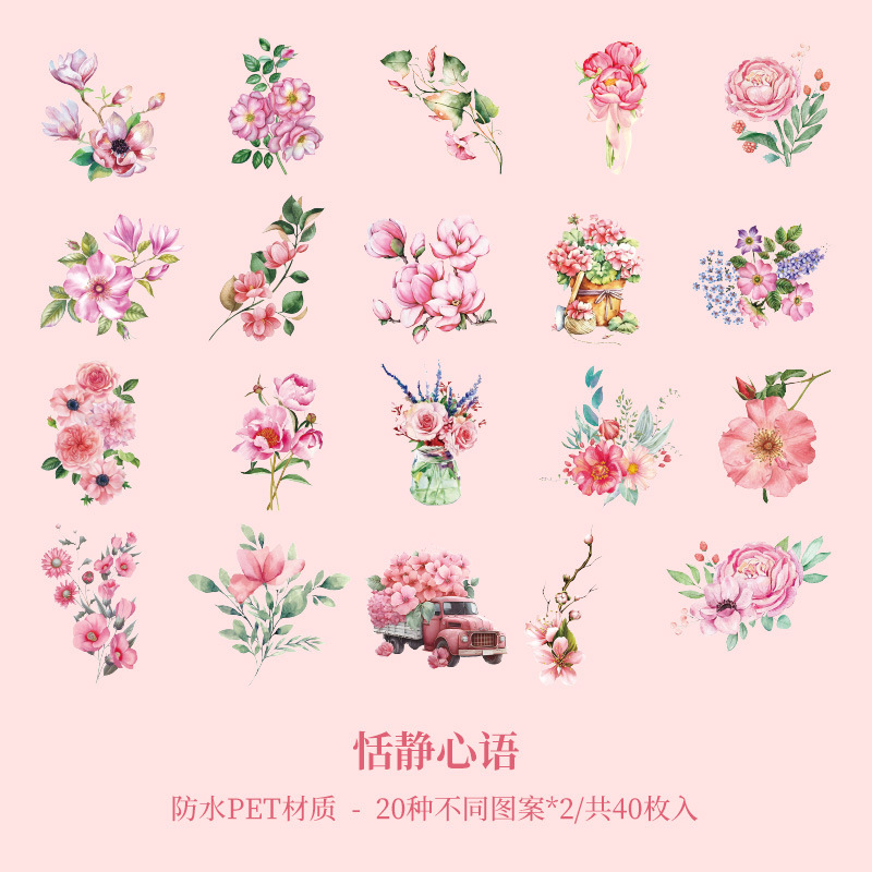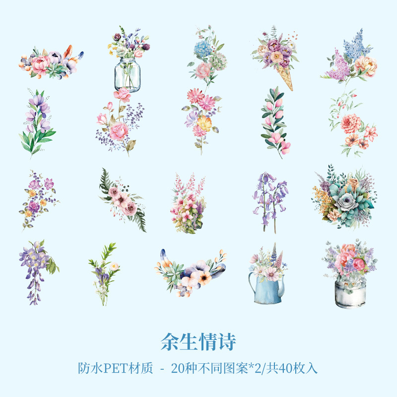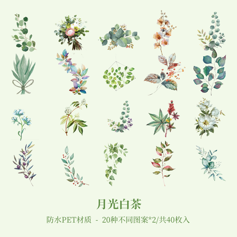 十二花仙系列贴纸极简ins植物花卉烫金贴画手账装饰素材贴纸批发