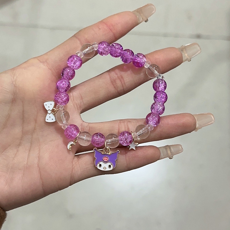 儿童爆花手链批发手工水晶串珠手串七彩色可爱玉桂狗情侣学生饰品