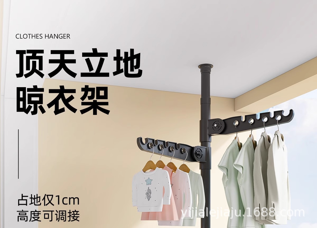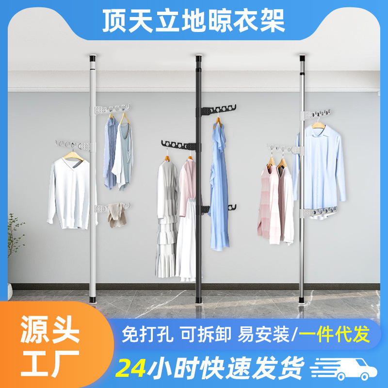 【抖音代发】顶天立地晾衣架落地挂衣架多功能金属简易挂包衣帽架