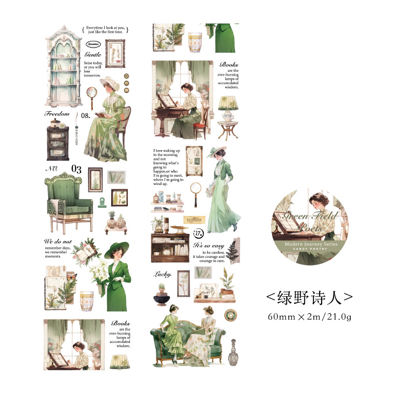 雾面pet胶带 摩登游记系列 手帐DIY装饰拼贴打底素材贴画6款