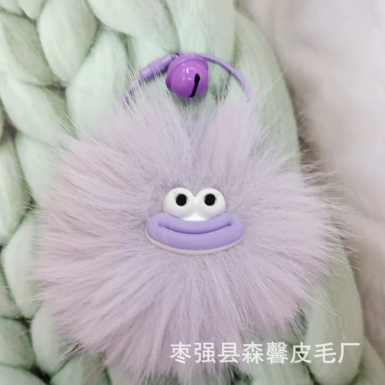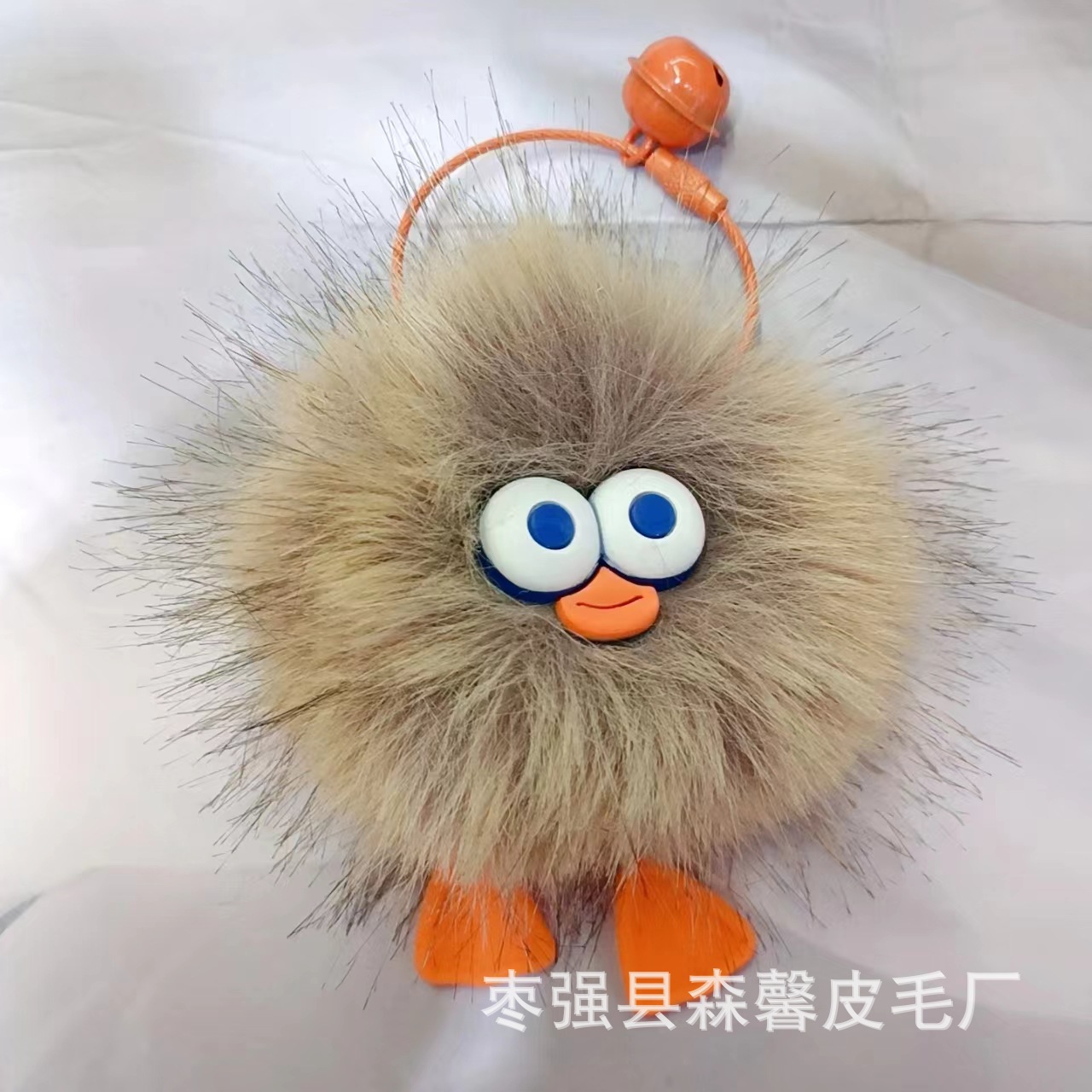 爆款彩色抗压狐狸毛小鸭子钥匙扣可爱煤球大眼仔玩偶书包挂件批发