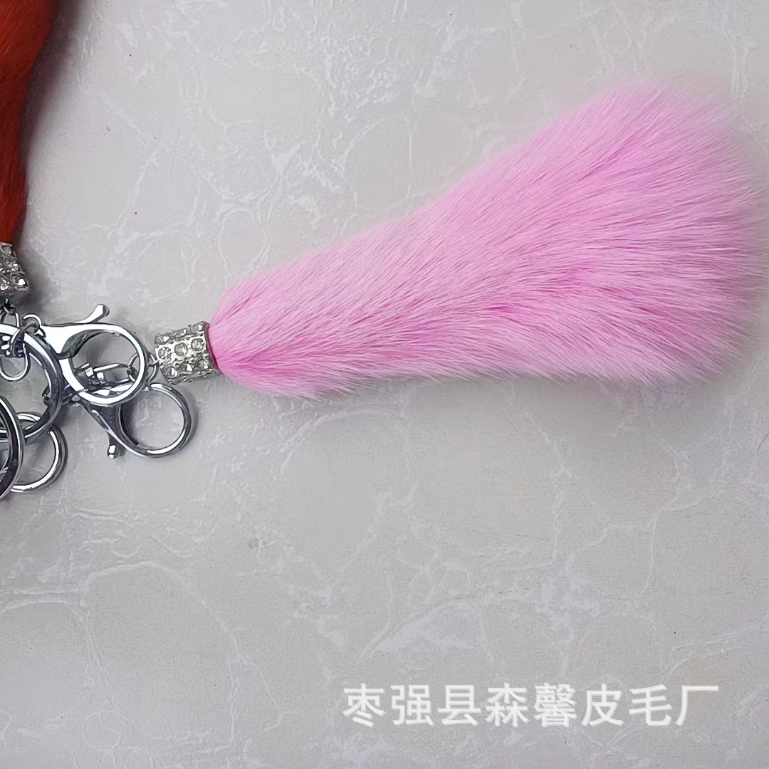 气质女神爆款真毛狐狸尾巴搭配可爱小熊满钻小饰品创意饰品钥匙圈