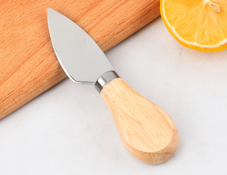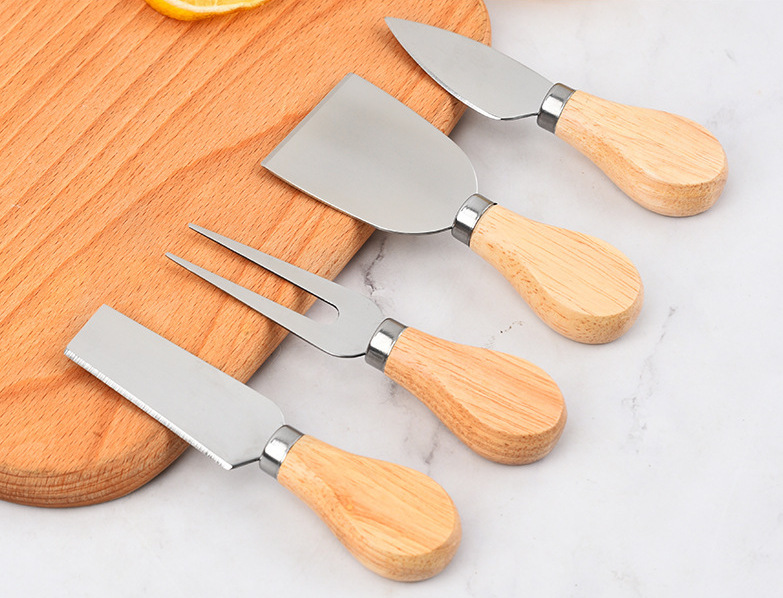 橡木柄芝士刀叉4件套迷你不锈钢蛋糕刀黄油切刀奶酪刀具套装