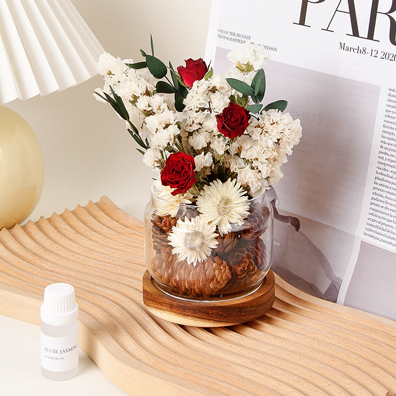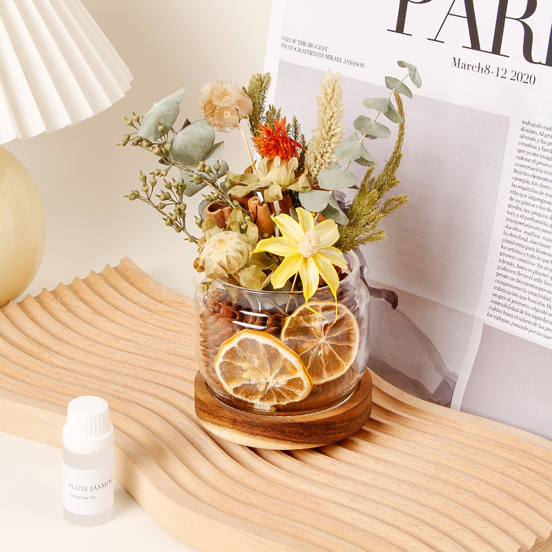 秋色暖阳(干花植物+玻璃杯+木盖+精油) 香型(青雨茉莉)