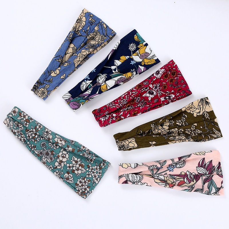 亚马逊碎花发带雪纺小清新头带松紧发箍韩版时尚头饰运动束发头箍