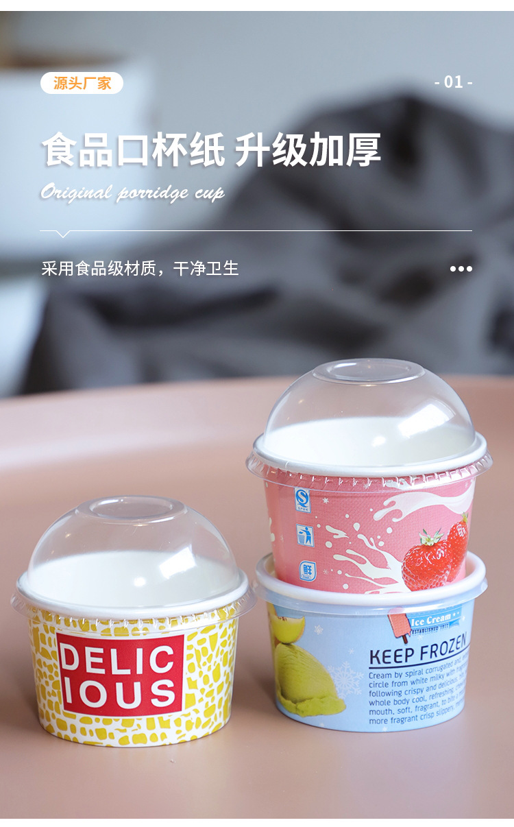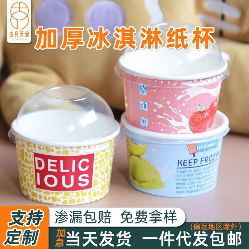 冰淇淋纸杯一次性食品级定制印logo小雪糕杯带盖带勺子冰激凌纸碗