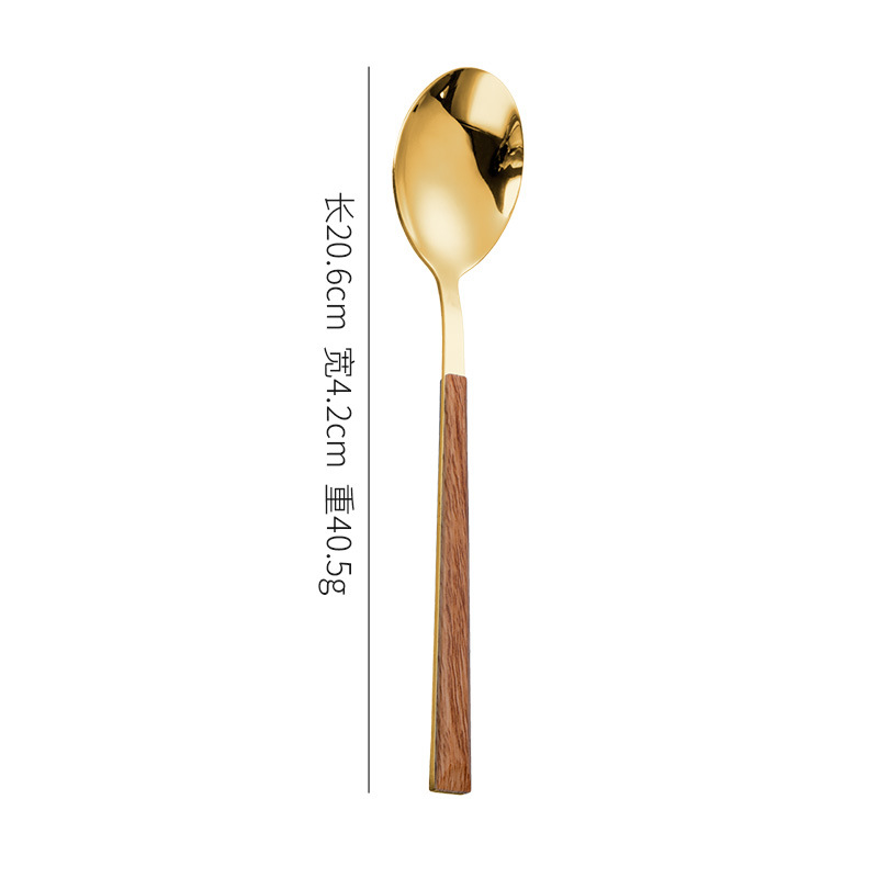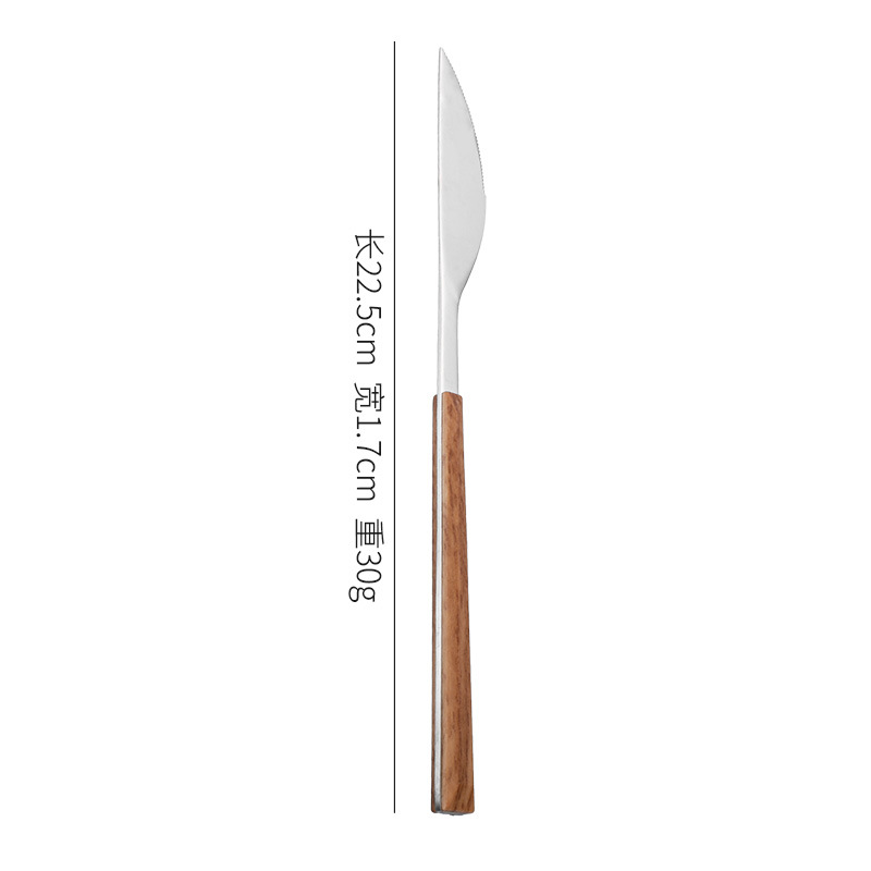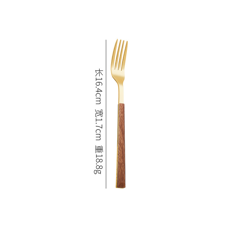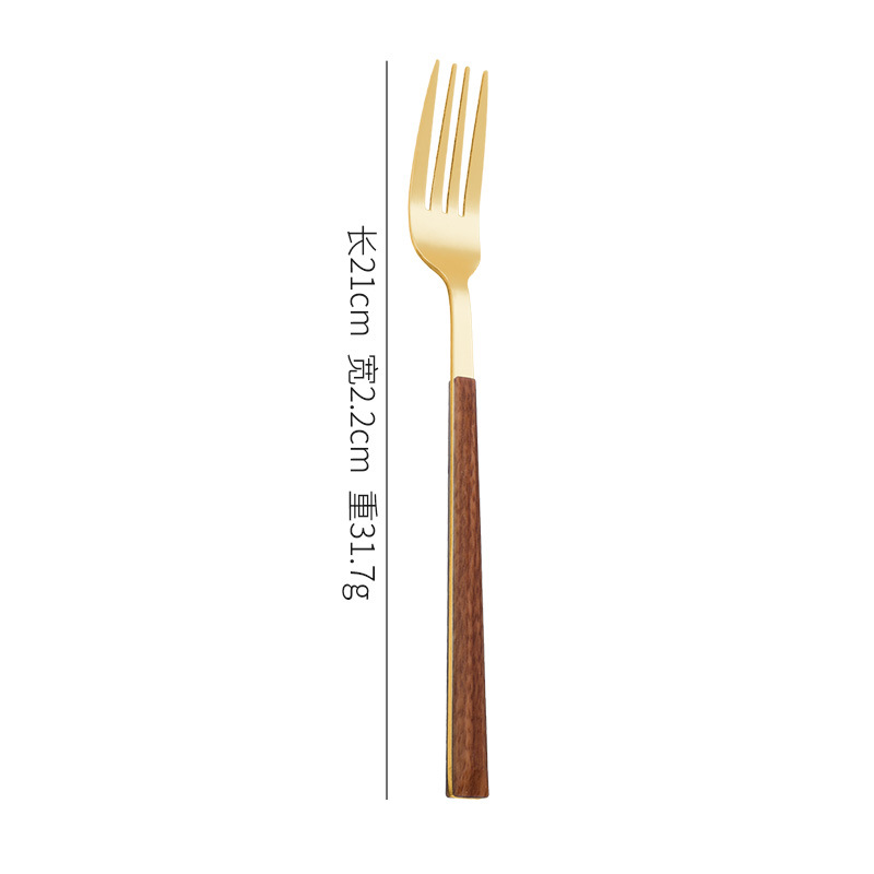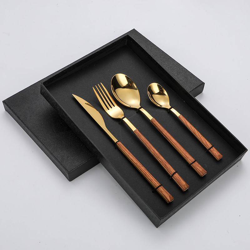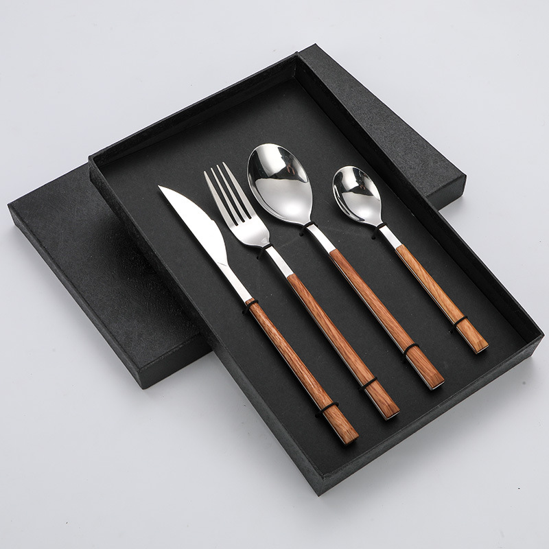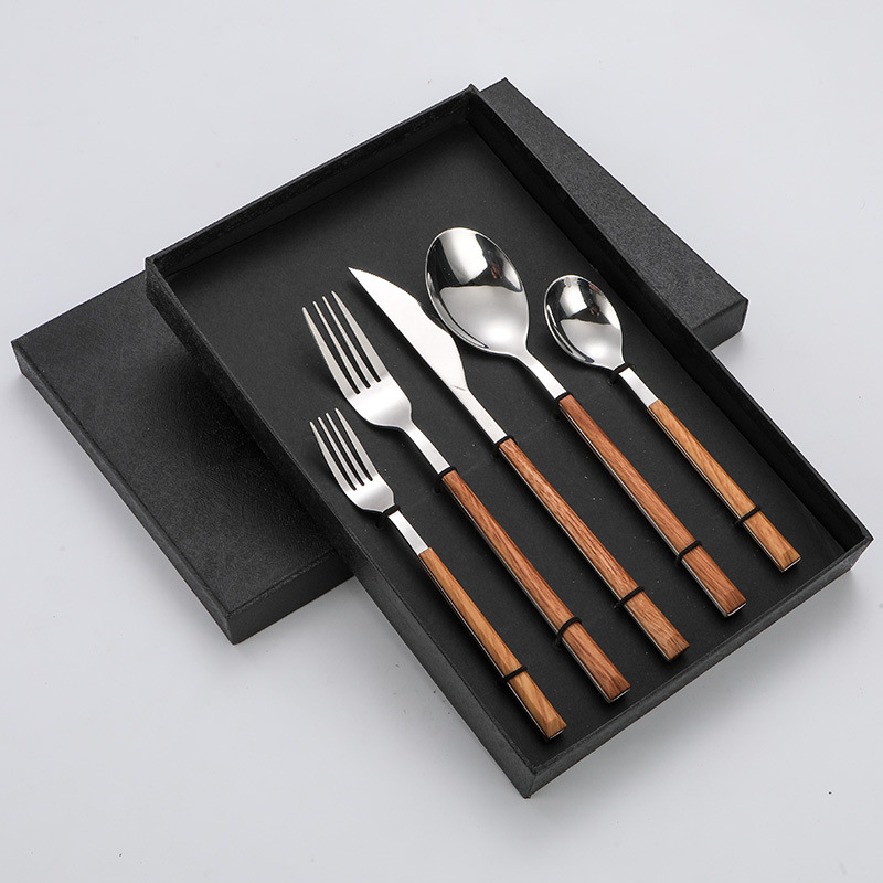 跨境仿木柄不锈钢刀叉勺木纹日韩西餐餐具牛排刀叉四件套礼盒套装