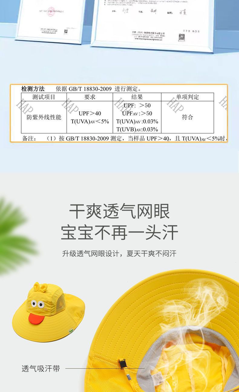 儿童防晒帽宝宝遮阳帽沙滩帽防紫外线夏季薄款透气大帽檐渔夫帽