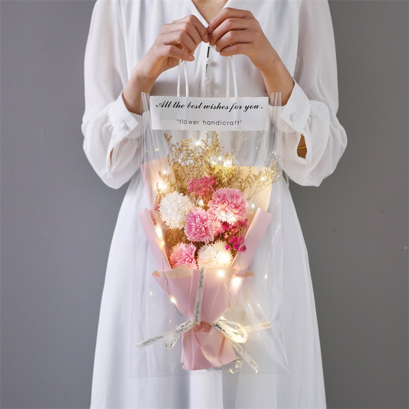 新款高配粉色康乃馨+灯串+礼品袋+贺卡~