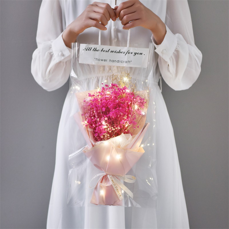 高配粉色满天星+灯串+礼品袋+贺卡~