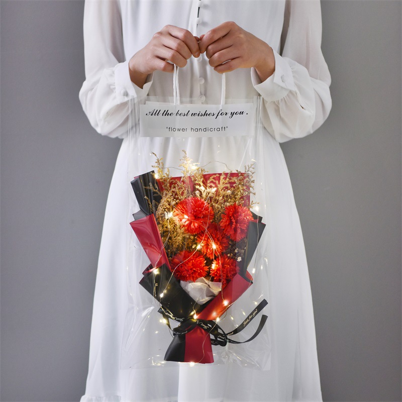 新款高配红色康乃馨+灯串+礼品袋+贺卡~