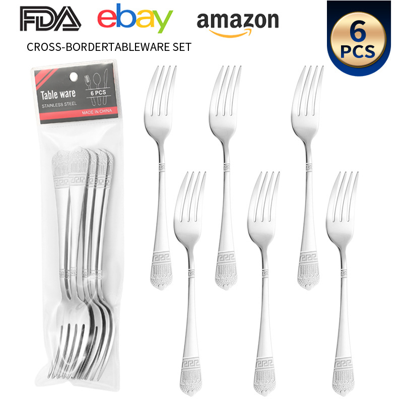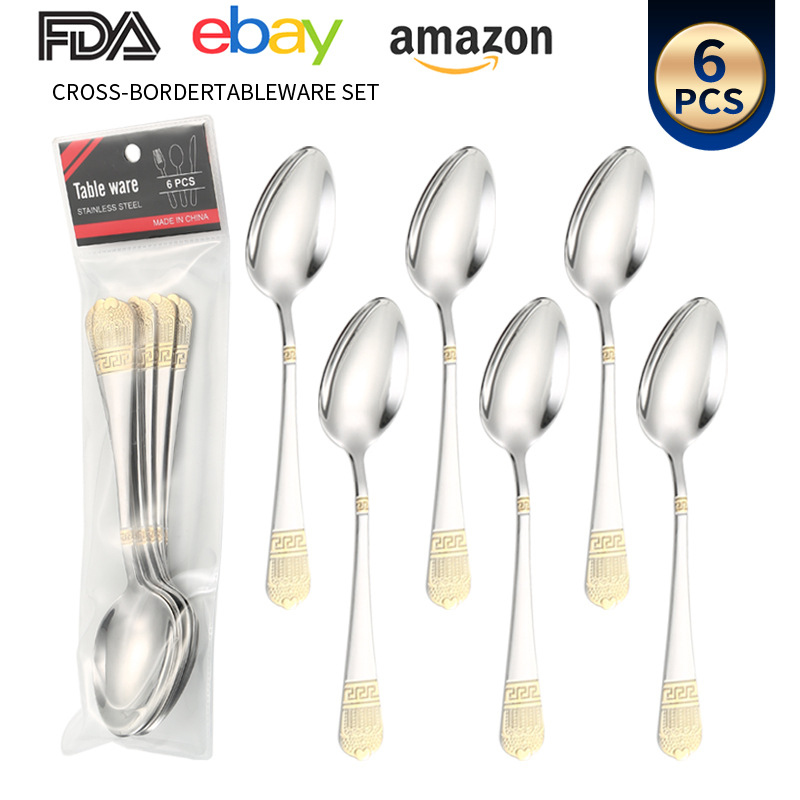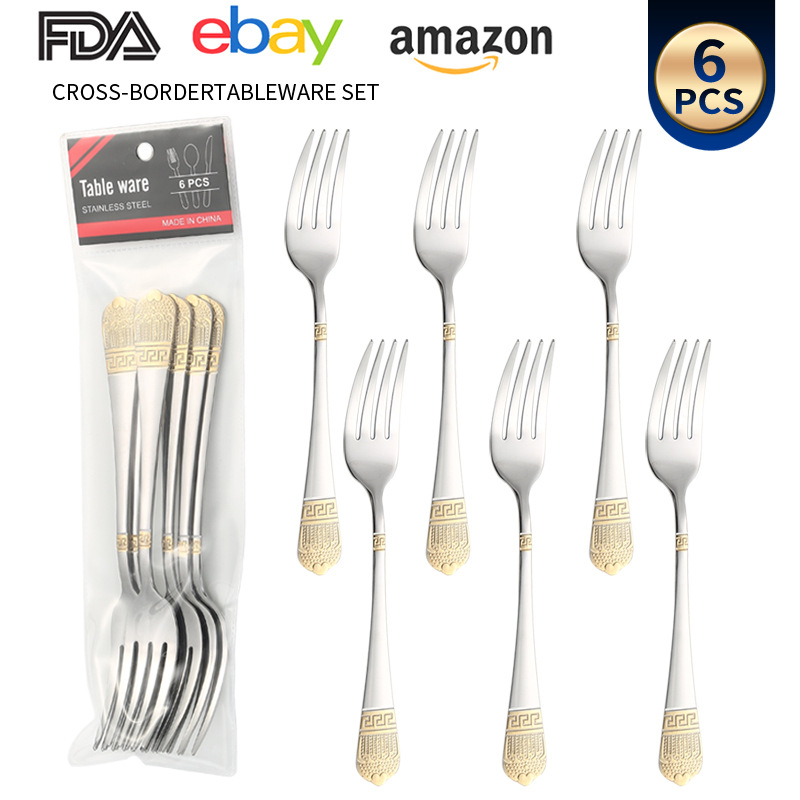 亚马逊跨境不锈钢餐具批发镀金皇冠西餐刀叉勺6支装pvc袋中东系列