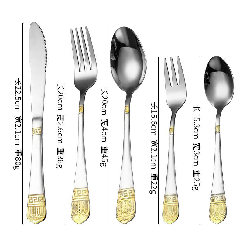 不锈钢皇冠镀金酒店牛排西餐刀叉勺套装花纹刀叉勺四件套可加logo