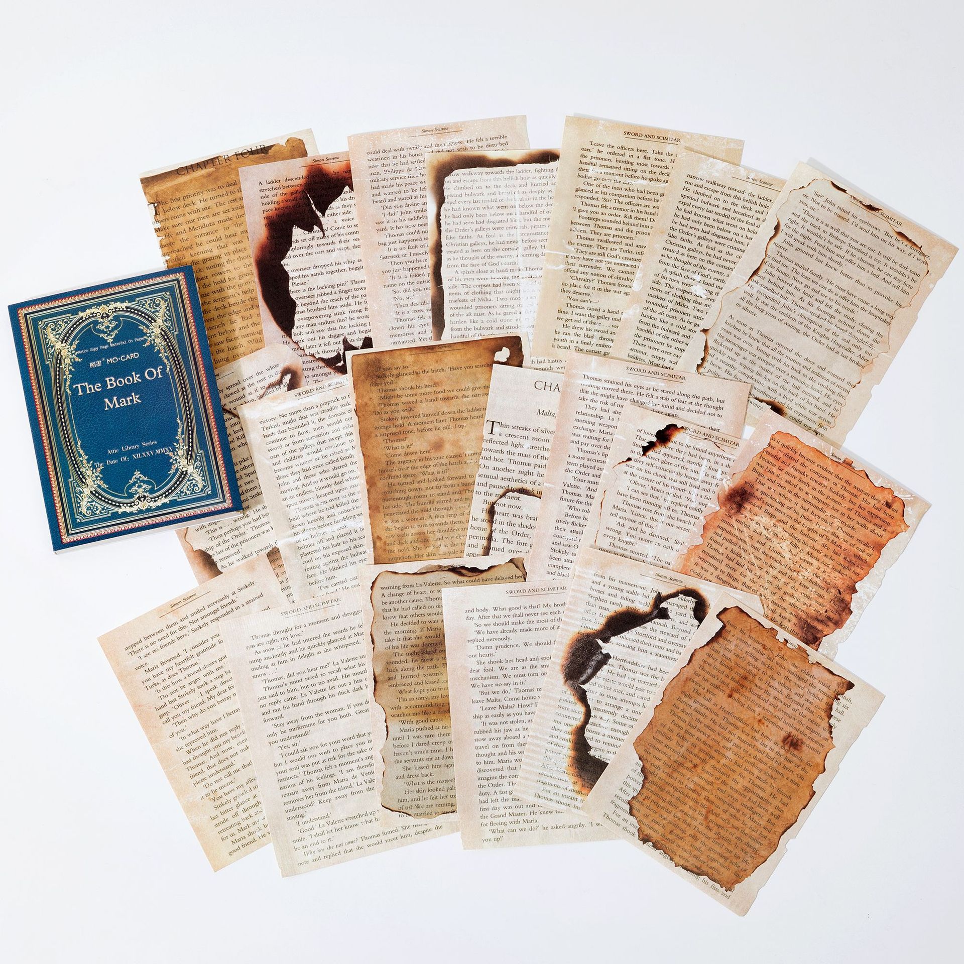 素材纸本 阁楼图书馆系列 复古痕迹书页手帐打底装饰纸8款