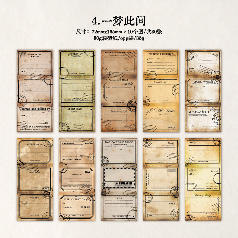 可撕素材纸 沉浮如寄系列 复古素材拼贴装饰打底留言记事6款
